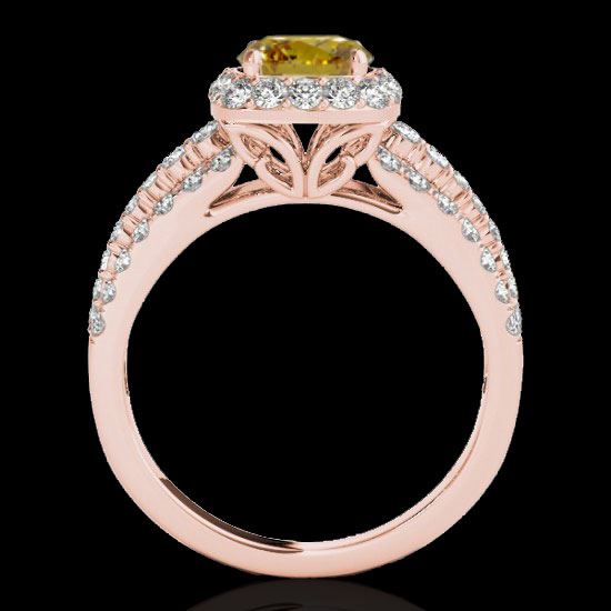 REF-316Y4K -34015 ---- 2.25 CTW Certified Si/I Fancy Intense Yellow Diamond Solitaire Halo Ring 10K Rose Gold ---- Luxury Designer Brand Ring Appraised at $19,150 Certificate Number US34015 10k Rose gold, Ring Size is 7, Ring measuring approx. Uniform, weighing in total approx. 5.5 grams. Made in the USA and is stamped 10k, Main stone 1.25 carat total weight containing 1 pieces of Intense Fancy Yellow color with SI quality Round shape cut Diamond , Stone #2 1 carat total weight containing 60 pieces of H-I color with VS/SI quality Round shape cut Diamond