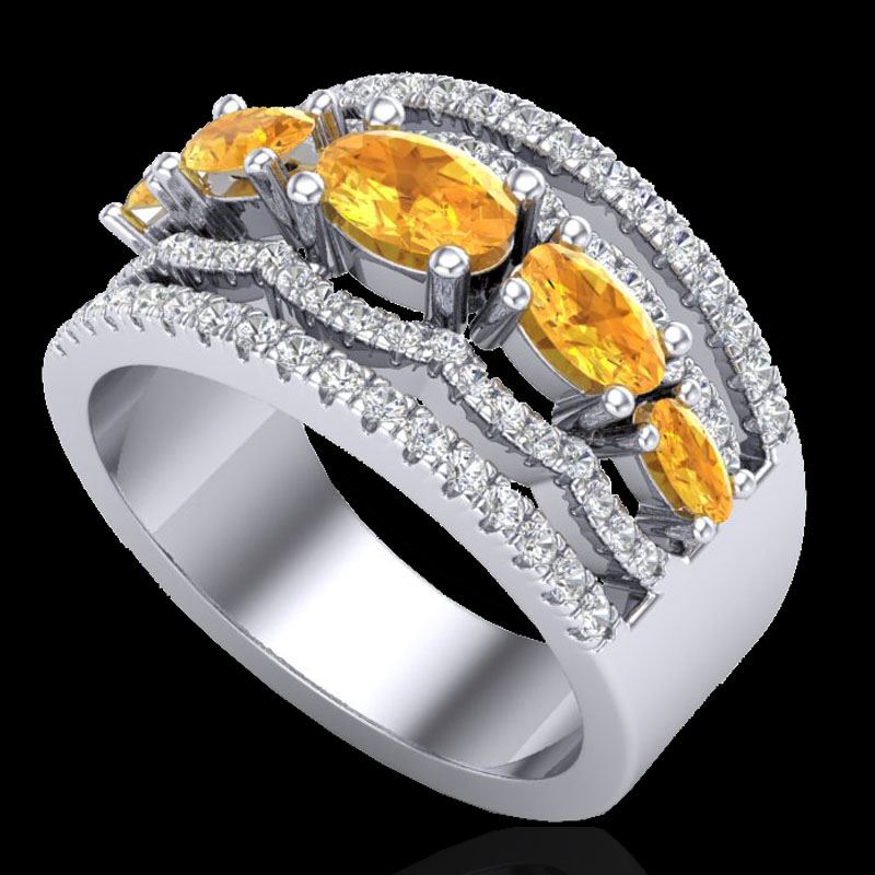 2.25 CTW Citrine & Micro Pave VS/SI Diamond Certified Designer Ring 10K White Gold ---- Luxury Designer Brand Ring Appraised Retail Price at $4,750 ---- SKU Number US20798 10k White gold Ring Size is 7, Ring measuring approx. 7/16"X7/16" , weighing in total approx. 6.5 grams. Made in the USA and is stamped 10k, Main stone 1.65 carat total weight containing 5 pieces of Translucent Yellow color with AAA quality Oval shape cut Citrine , Stone #2 0.6 carat total weight containing 68 pieces of H-I color with VS/SI quality Round shape cut