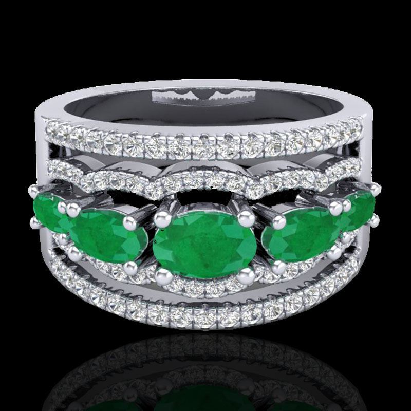 REF-71F3N -20800 ---- 2.25 CTW Emerald & Micro Pave VS/SI Diamond Designer Ring 10K White Gold ---- Luxury Designer Brand Ring Appraised at $4,700 Certificate Number US20800 10k White gold, Ring Size is 7, Ring measuring approx. 7/16"X7/16" , weighing in total approx. 6.5 grams. Made in the USA and is stamped 10k, Main stone 1.65 carat total weight containing 5 pieces of Intense Green color with AAA quality Oval shape cut Emerald , Stone #2 0.6 carat total weight containing 68 pieces of H-I color with VS/SI quality Round shape cut Diamond