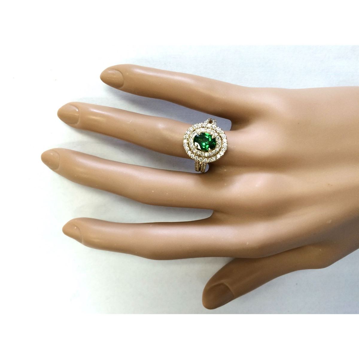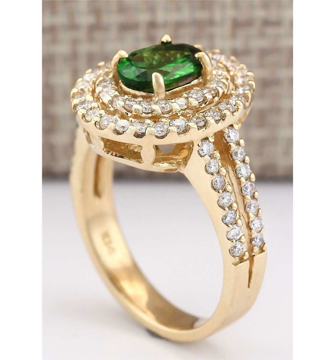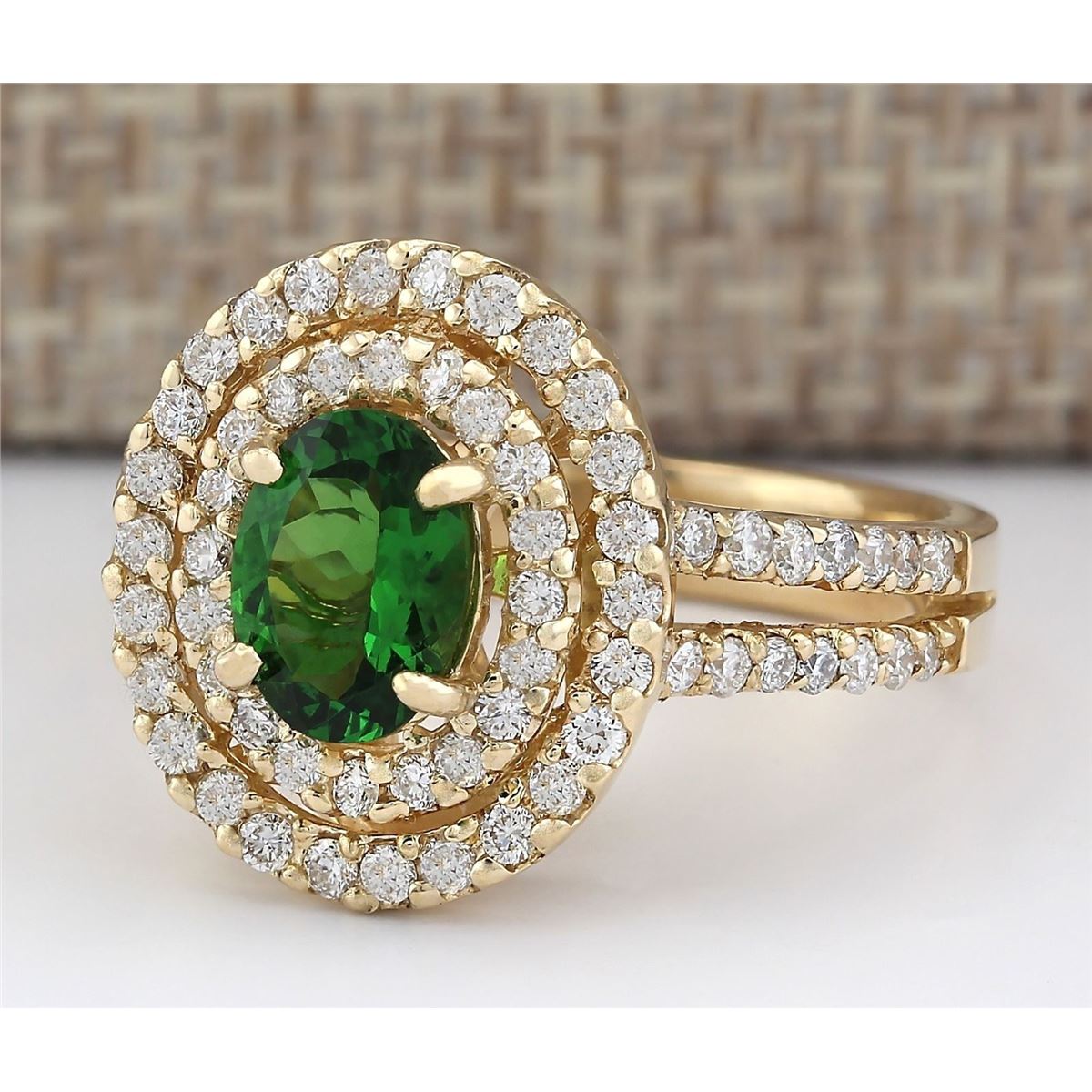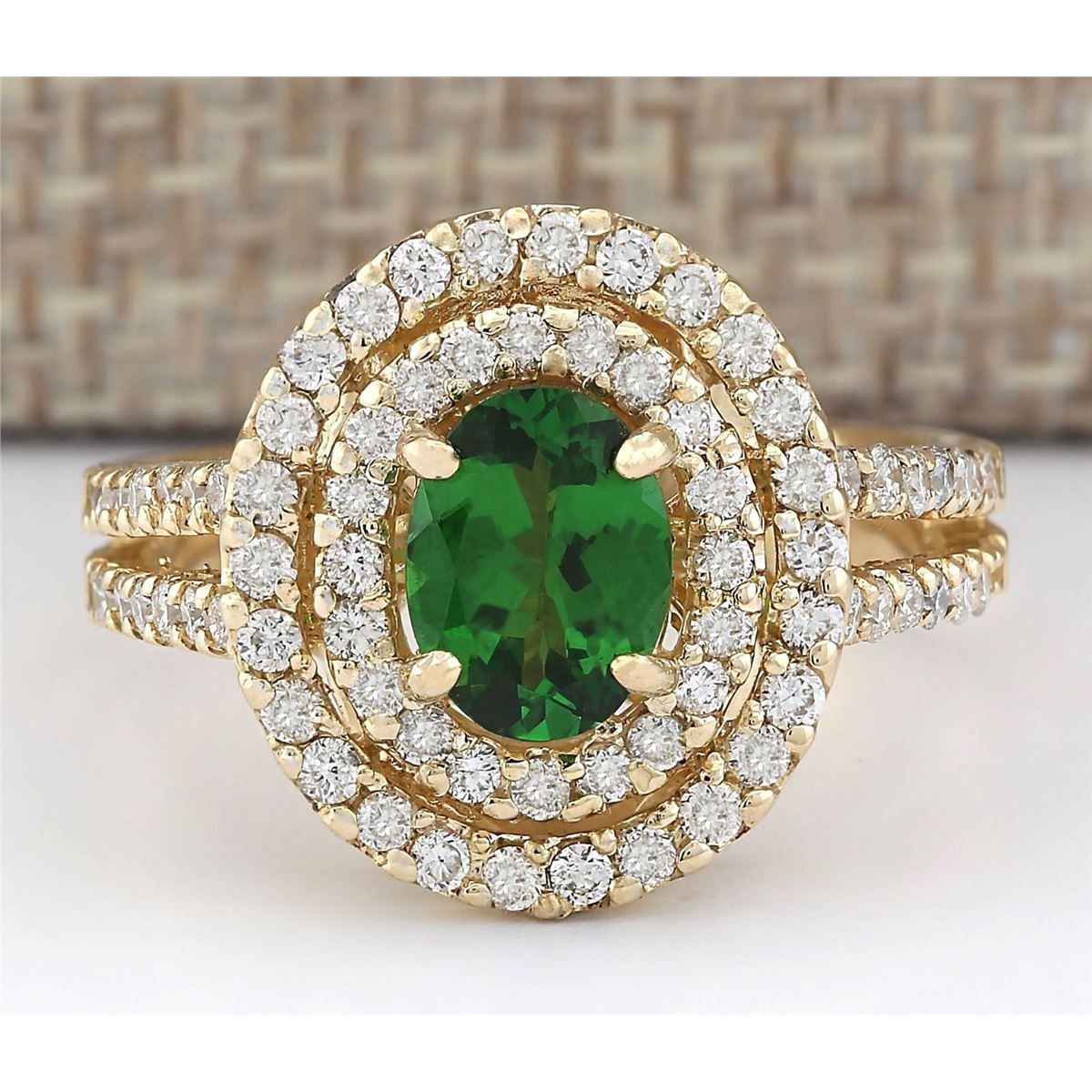 Stamped: 14K Ring Size: 7.25 Total Ring Weight: 7.4 Grams Diamond Weight: Total Natural Diamond Weight is 1.05 SI1-SI2 clarity / G-H color Gemstone Weight: Total Natural Tsavorite Weight is 1.20ctw (Measures: 7.87x6.30) Main Stone Color: Green Face Measures: 15.90x14.10mm SKU: [703644]