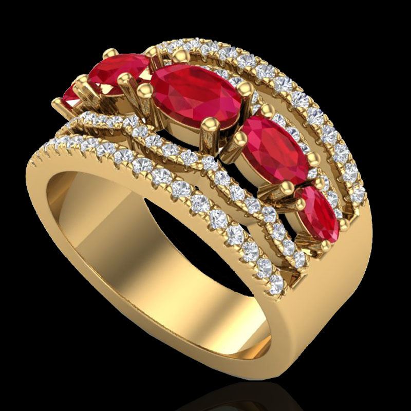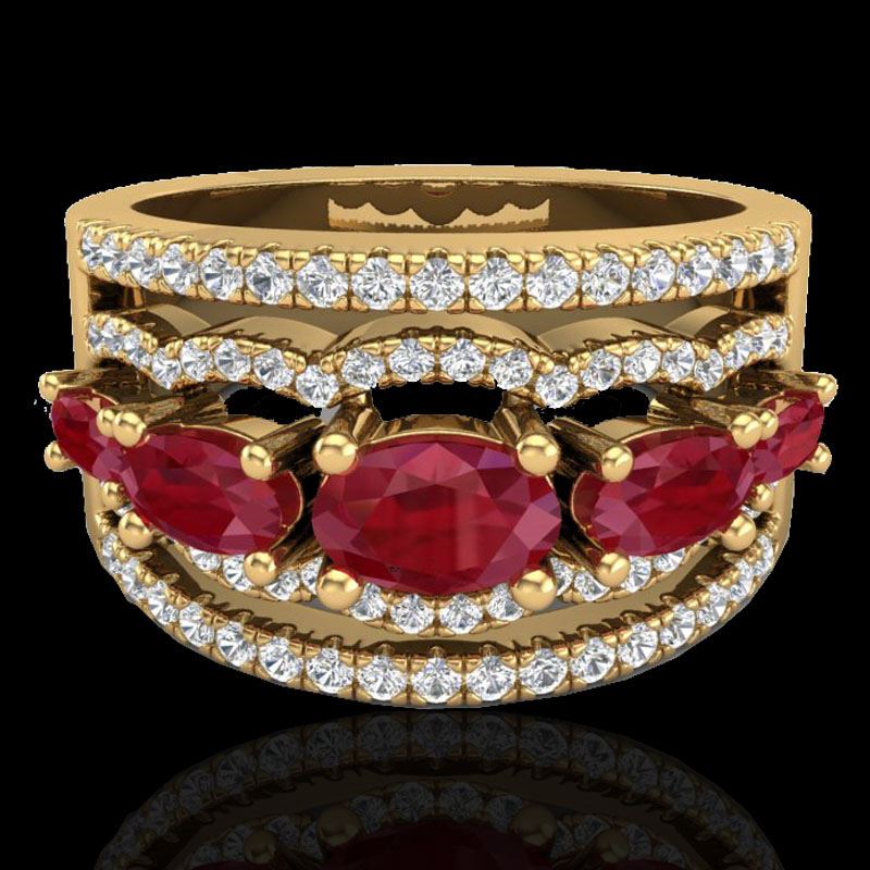 2.25 CTW Ruby & Micro Pave VS/SI Diamond Certified Designer Ring 10K Yellow Gold ---- Luxury Designer Brand Ring Appraised Retail Price at $5,100 ---- SKU Number US20803 10k Yellow gold Ring Size is 7, Ring measuring approx. 7/16"X7/16" , weighing in total approx. 6.5 grams. Made in the USA and is stamped 10k, Main stone 1.65 carat total weight containing 5 pieces of Mid-Opaque-Deep Red color with AAA quality Oval shape cut Ruby , Stone #2 0.6 carat total weight containing 68 pieces of H-I color with VS/SI quality Round shape cut