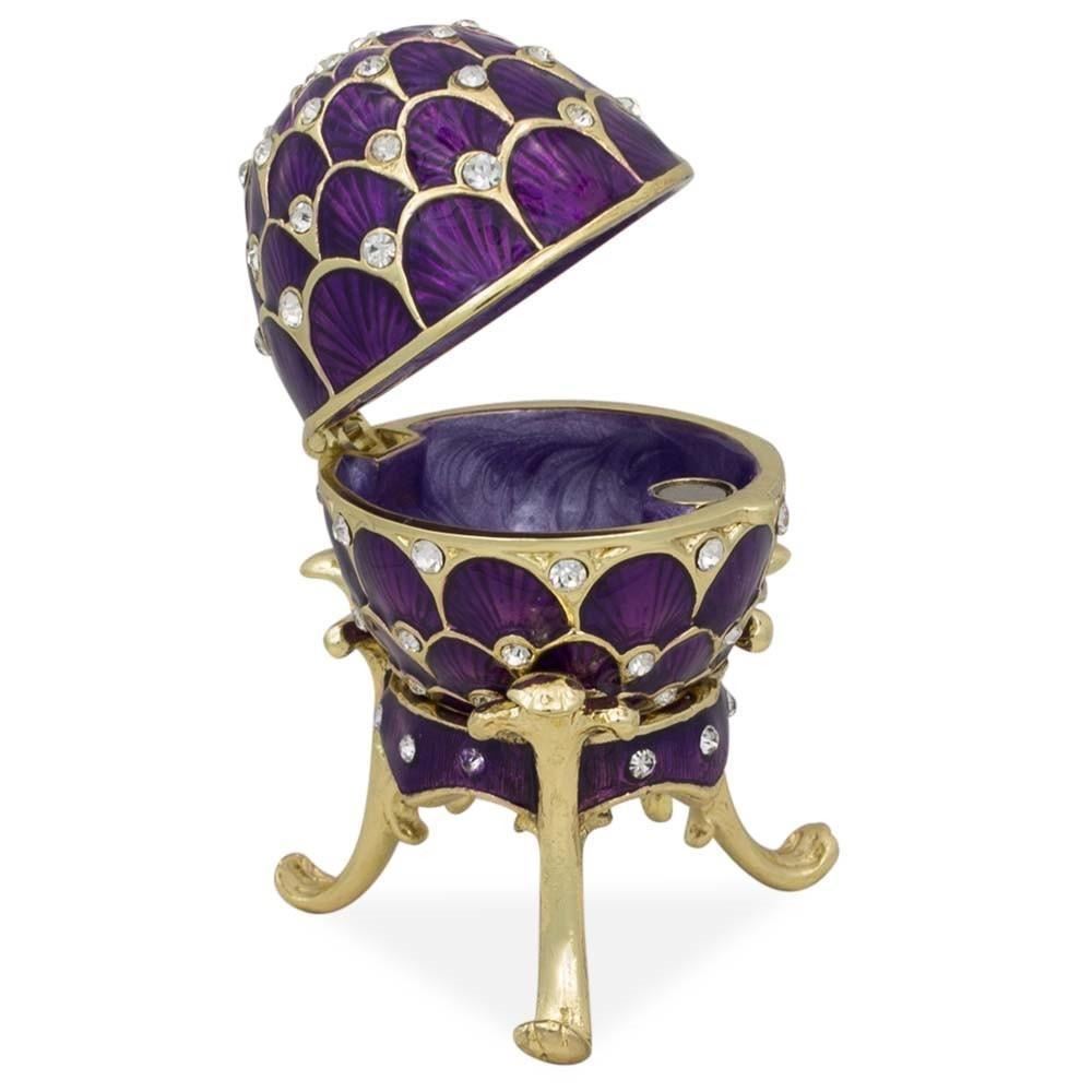 2.25" Crystal Purple Arches Enameled Faberge Inspired Easter Egg