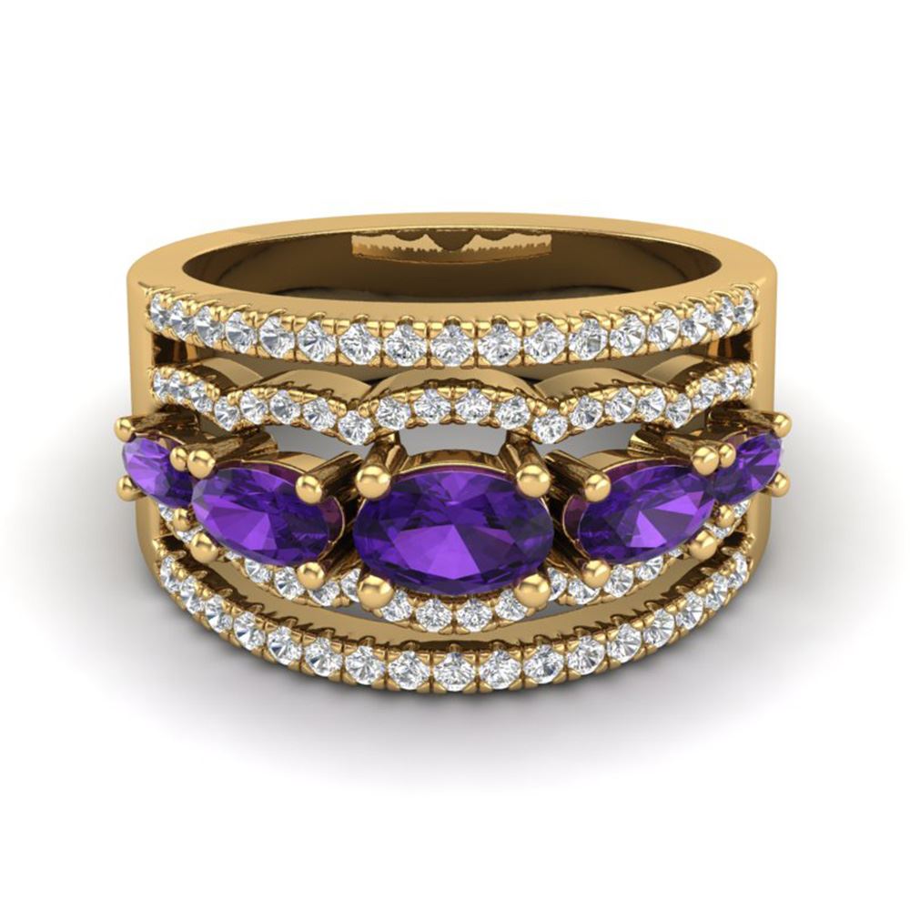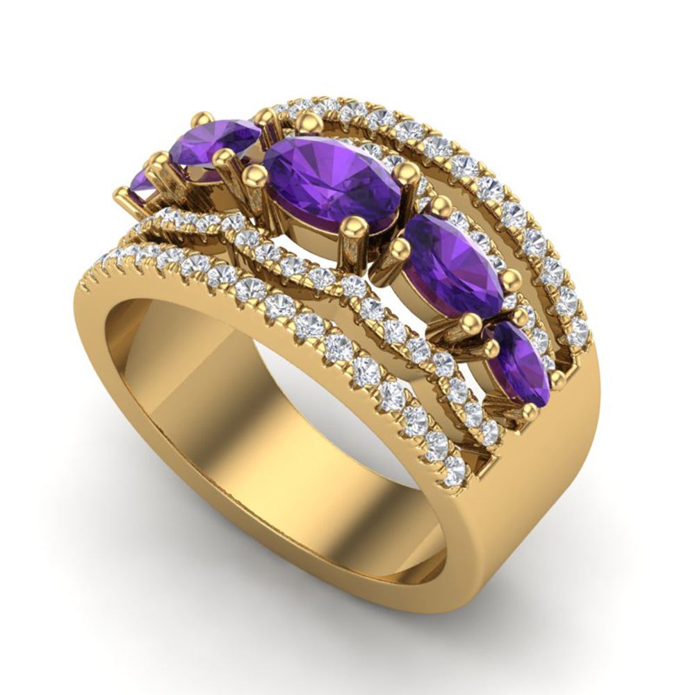 SKU: 20793 ---- 2.25 ctw Amethyst & Micro Pave VS/SI Diamond Designer Ring 10k Yellow Gold
