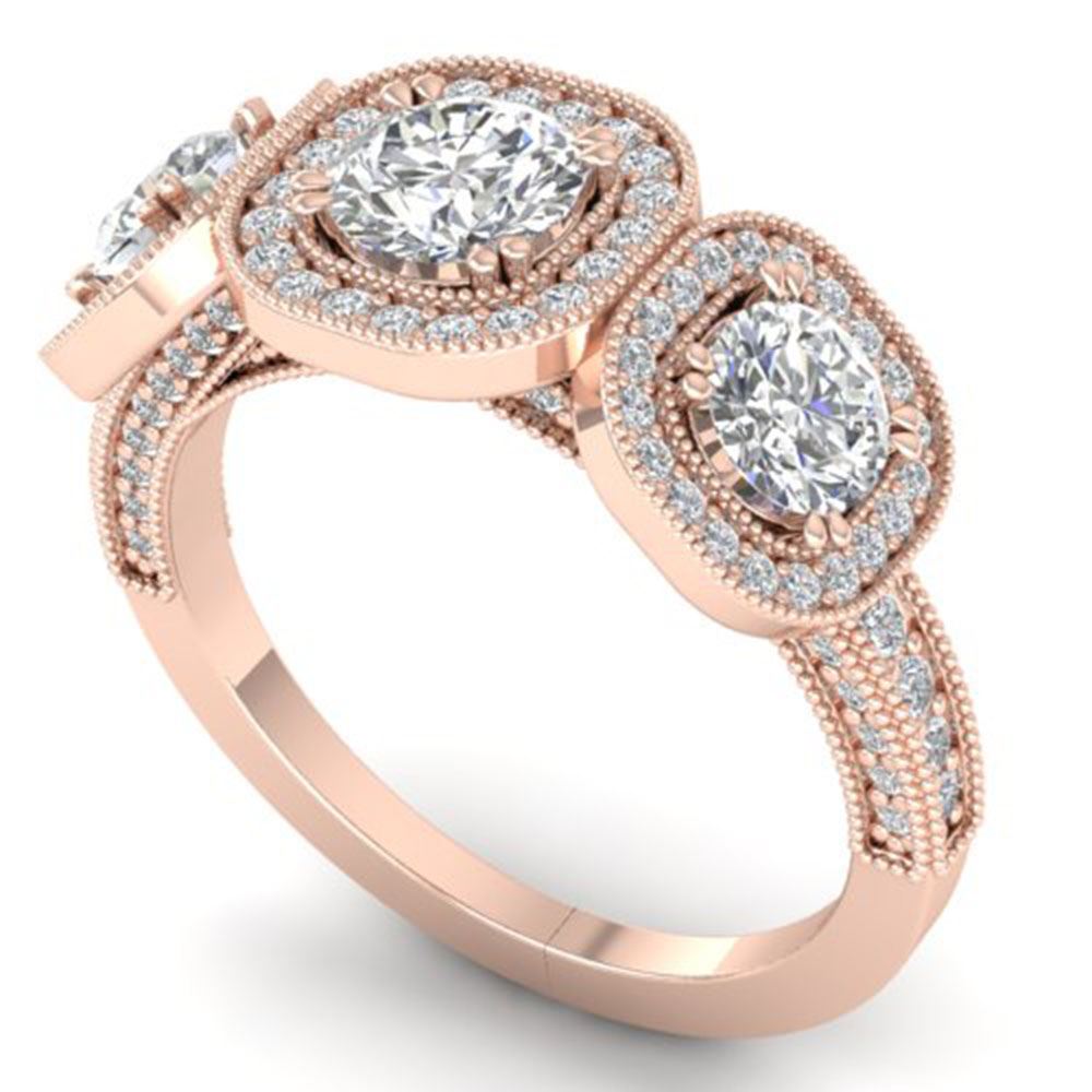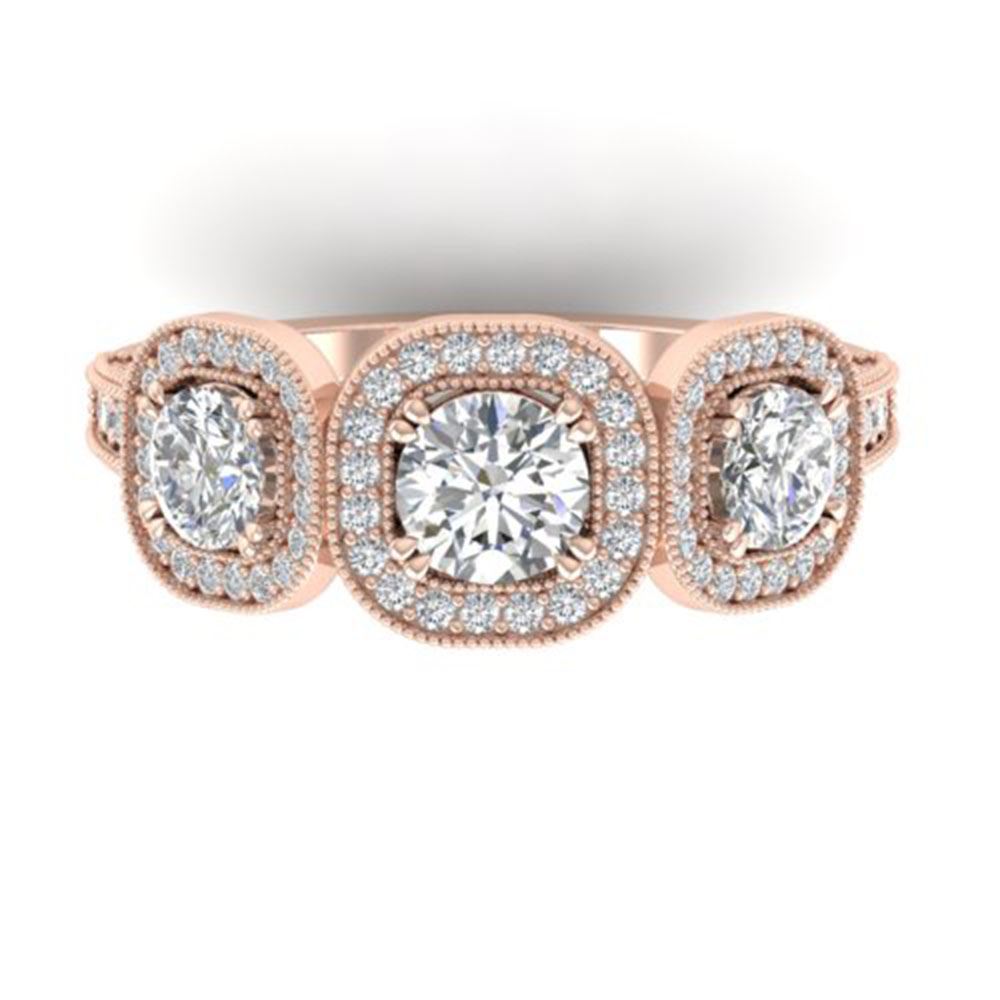 REF-236A2N - SKU: 30439 ---- 2.25 ctw Certified VS/SI Diamond 3 Stone Micro Ring 14k Rose Gold