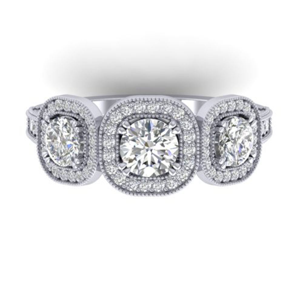 REF-236Y2X - SKU: 30438 ---- 2.25 ctw Certified VS/SI Diamond 3 Stone Micro Ring 14k White Gold