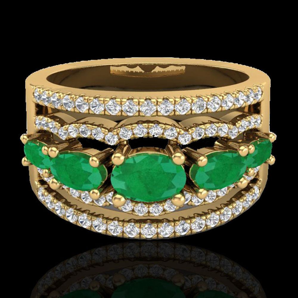 REF-81A8N - SKU: 20801 ---- 2.25 ctw Emerald & Micro Pave VS/SI Diamond Designer Ring 10k Yellow Gold