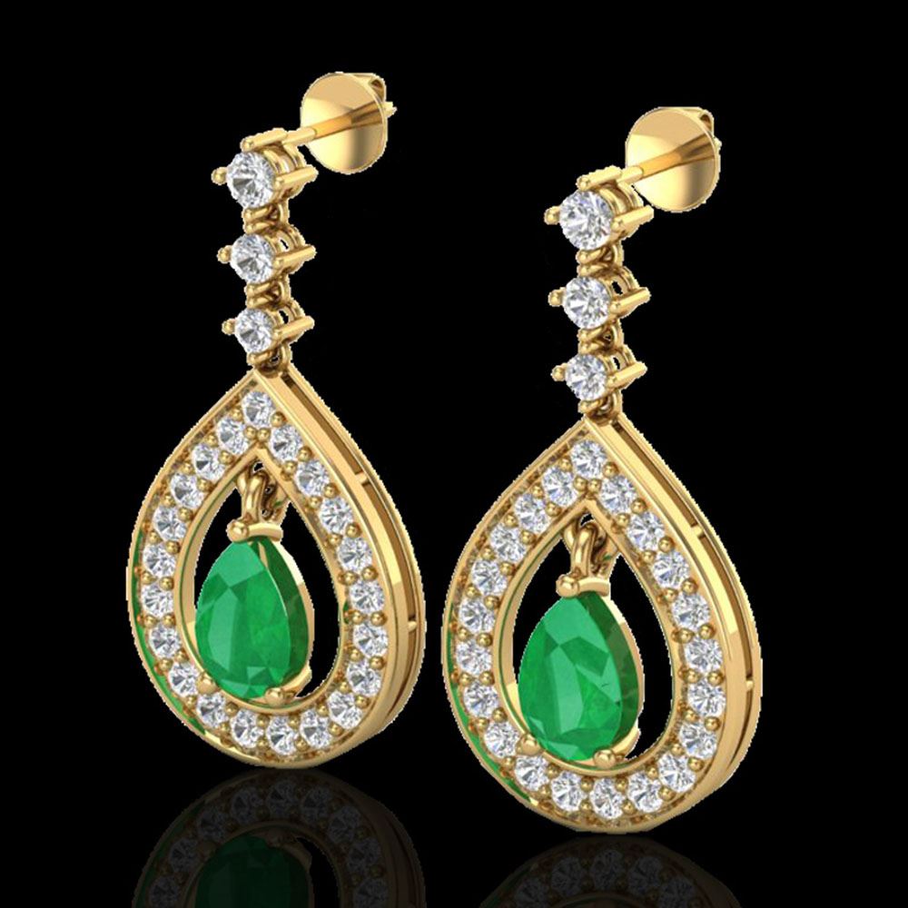 REF-105R5K - SKU: 23152 ---- 2.25 ctw Emerald & Micro Pave VS/SI Diamond Earrings 14k Yellow Gold