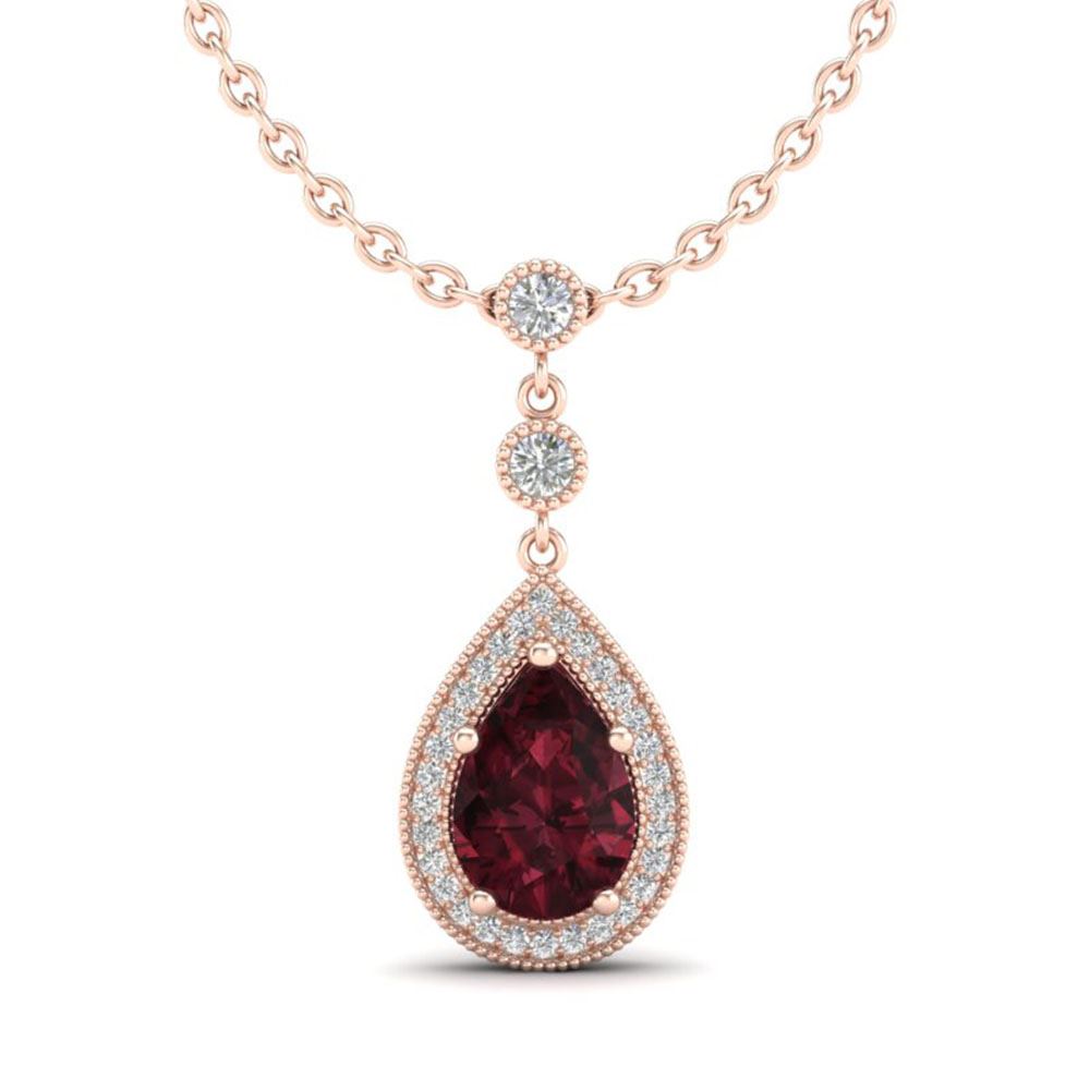 REF-30F8M - SKU: 23136 ---- 2.25 ctw Garnet & Micro VS/SI Diamond Necklace Designer 14k Rose Gold