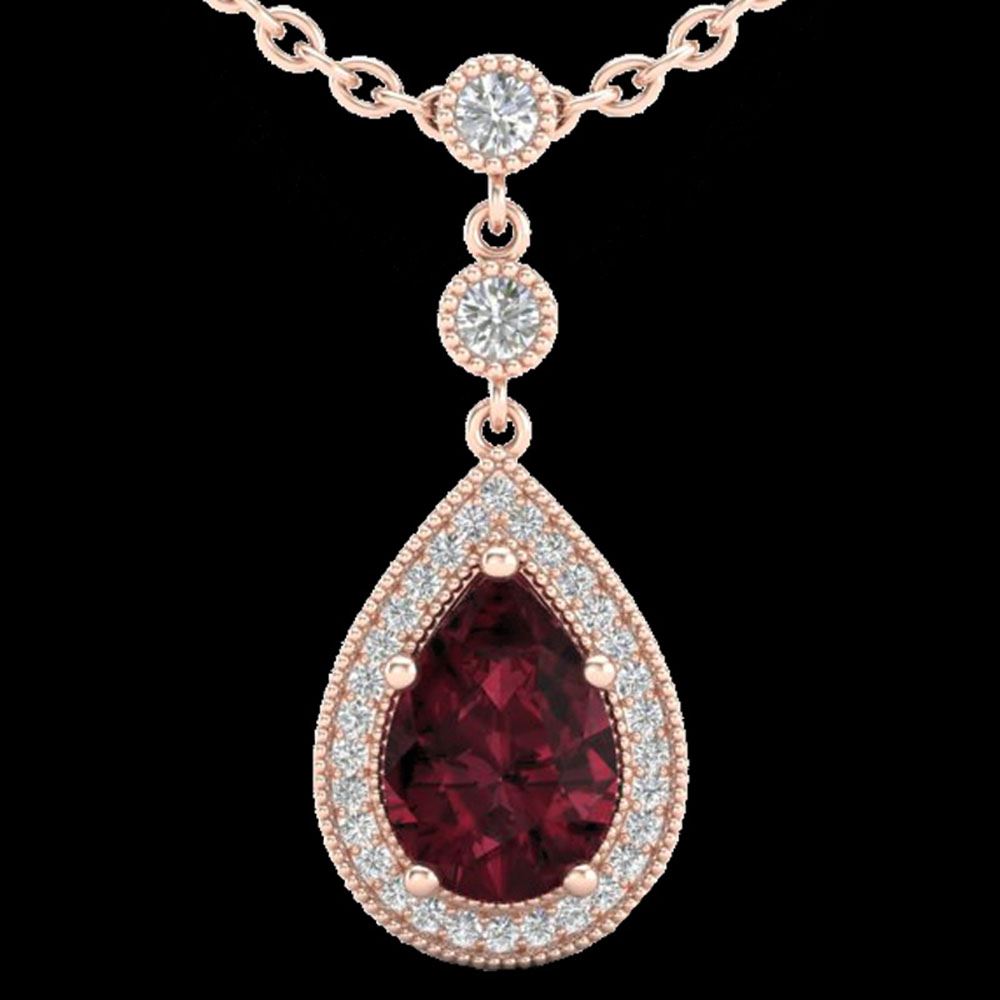 REF-30G8W - SKU: 23136 ---- 2.25 ctw Garnet & Micro VS/SI Diamond Necklace Designer 14k Rose Gold