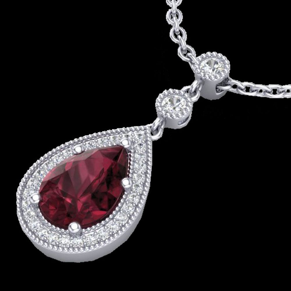 REF-34R3K - SKU: 23135 ---- 2.25 ctw Garnet & Micro VS/SI Diamond Necklace Designer 18k White Gold