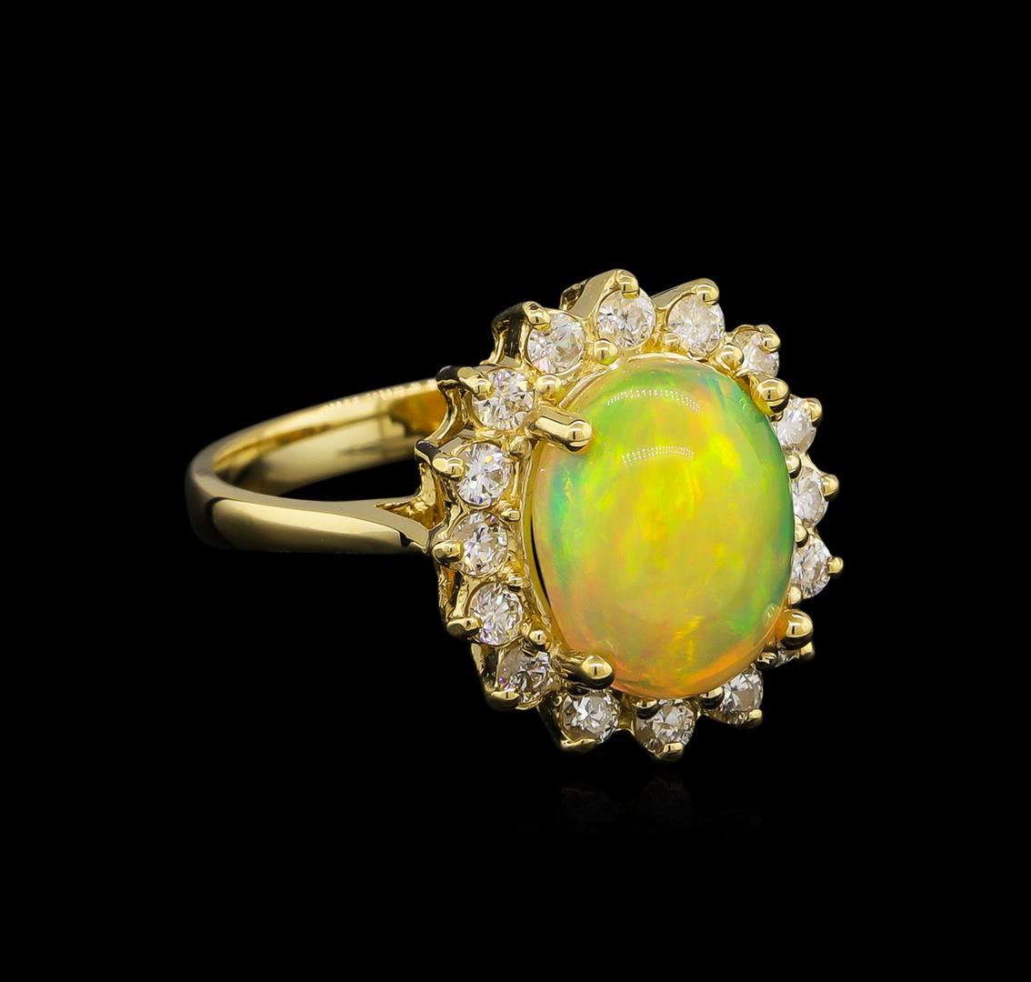 One ring featuring: 14KT yellow gold weighing 3.92 grams containing one opal with a total weight of 2.25ct and side diamonds with a total weight of 0.50ct.