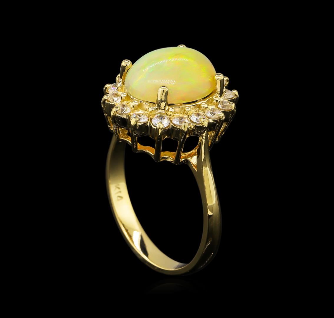 One ring featuring: 14KT yellow gold weighing 3.92 grams containing one opal with a total weight of 2.25ct and side diamonds with a total weight of 0.50ct.