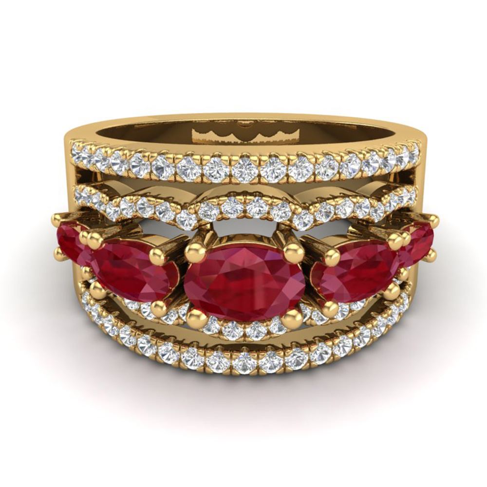 SKU: 20803 ---- 2.25 ctw Ruby & Micro Pave VS/SI Diamond Designer Ring 10k Yellow Gold
