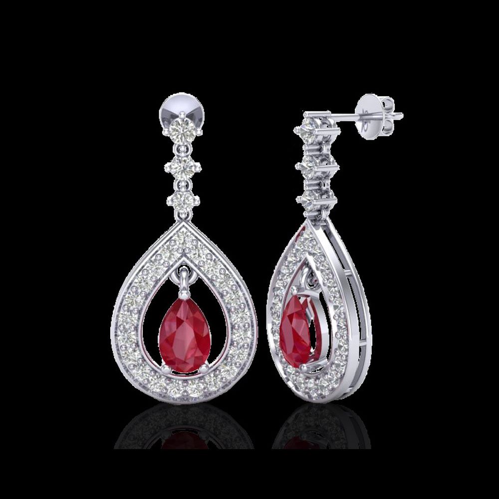 2.25 ctw Ruby & Micro Pave VS/SI Diamond Earrings 14K White Gold