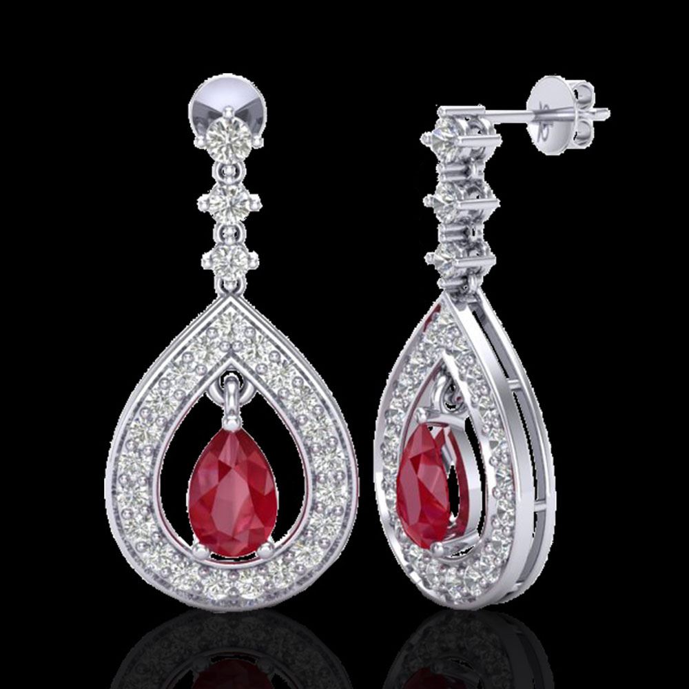 SKU: 23153 ---- 2.25 ctw Ruby & Micro Pave VS/SI Diamond Earrings 14k White Gold
