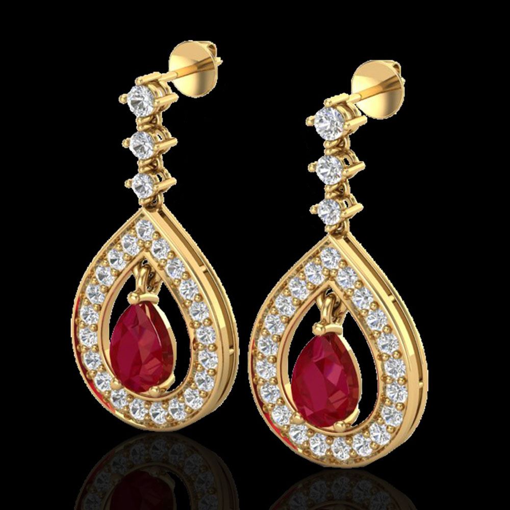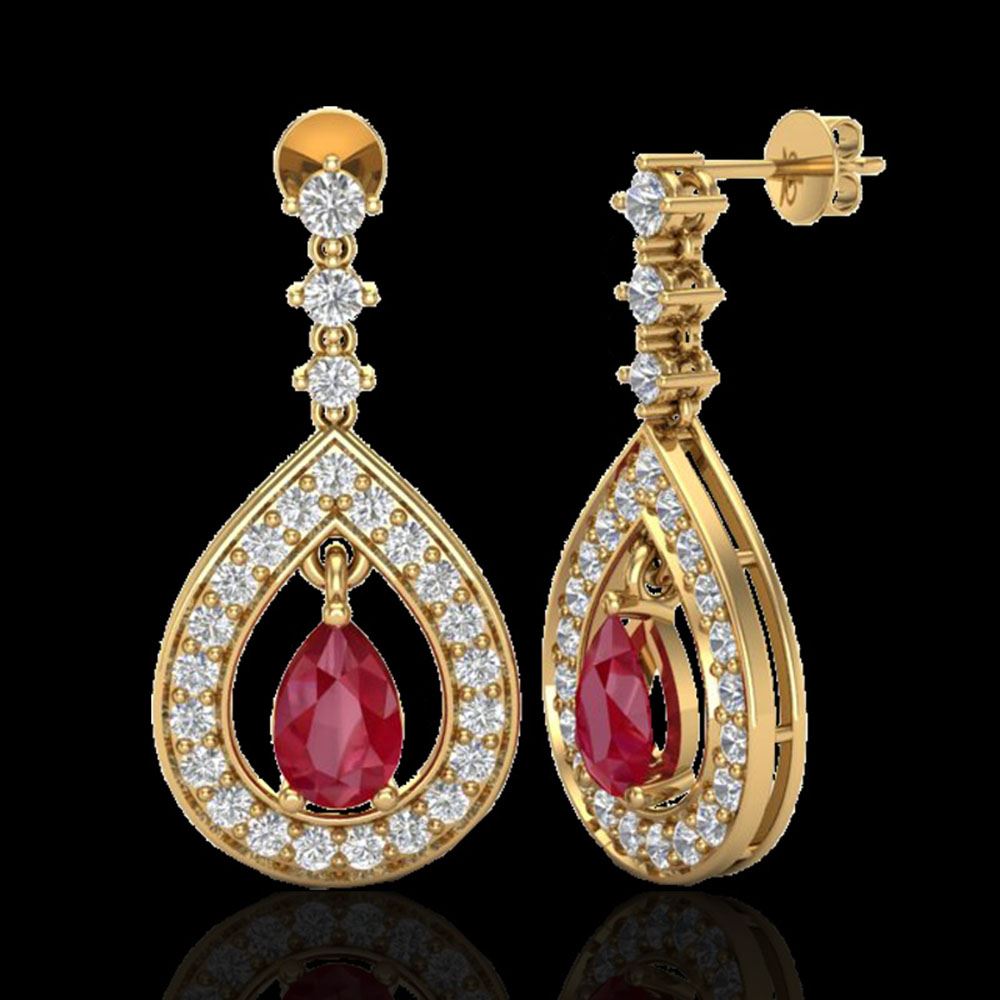 REF-105G5W - SKU: 23154 ---- 2.25 ctw Ruby & Micro Pave VS/SI Diamond Earrings 14k Yellow Gold