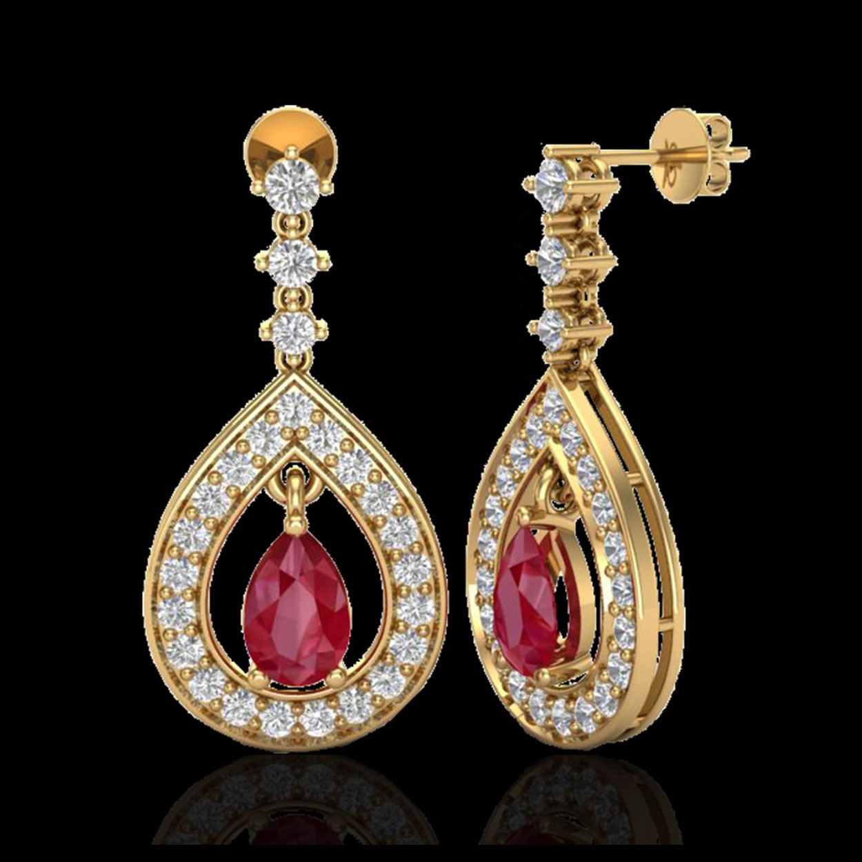 2.25 ctw Ruby & VS/SI Diamond Earrings 14K Yellow Gold