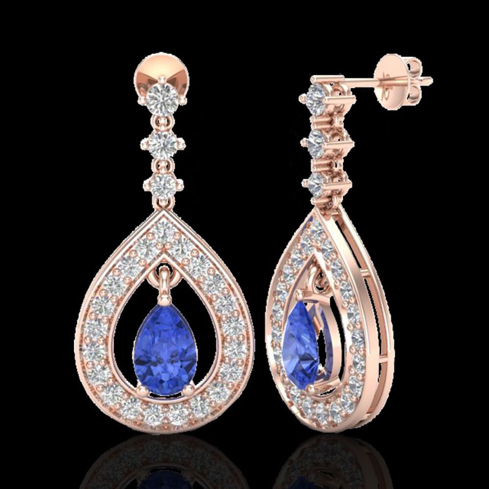 REF-109M3G - SKU: 23158 ---- 2.25 ctw Tanzanite & Micro Pave VS/SI Diamond Earrings 14k Rose Gold