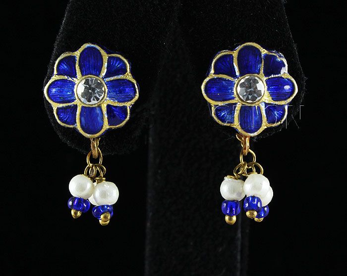 2.25GRAM INDIAN HANDMADE LAKH STUD FASHION EARRING **|**|** Weight(g): 2.25 ; Metal: SILVER PLATEDLAKH ; Shape: FLOWER ; MSRP: $300