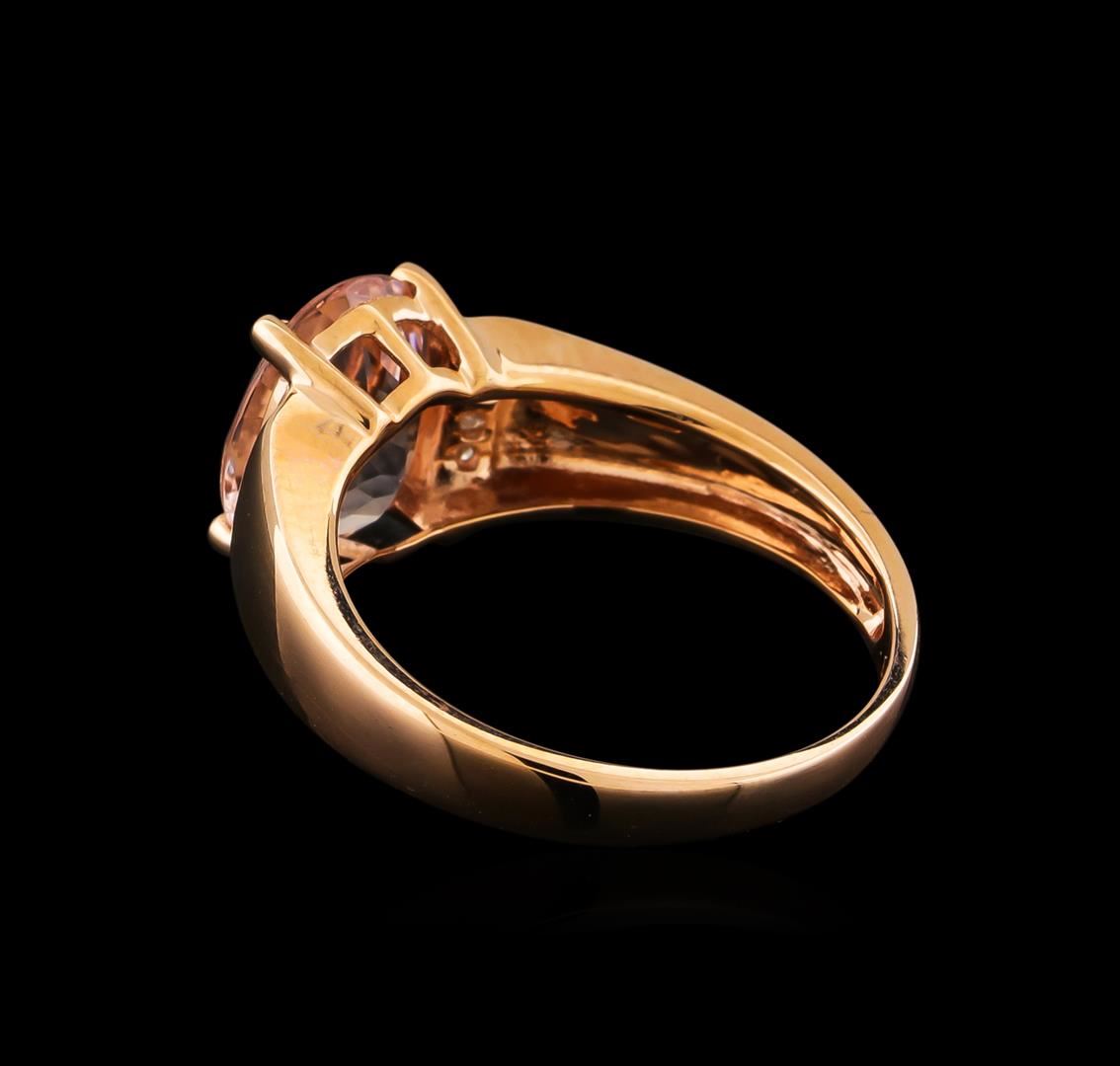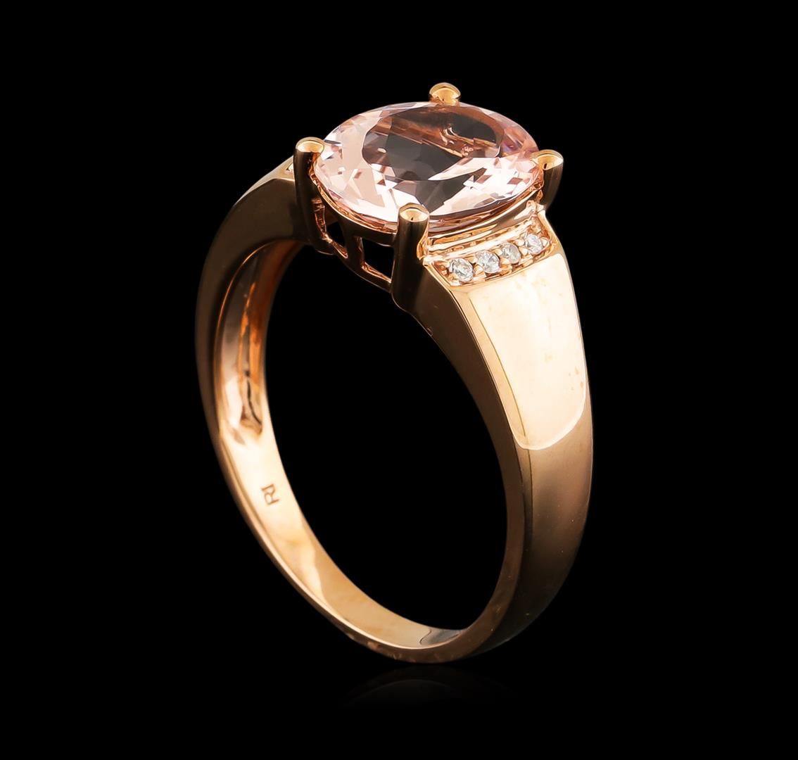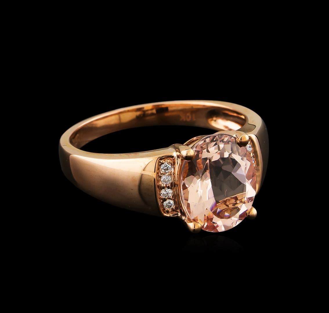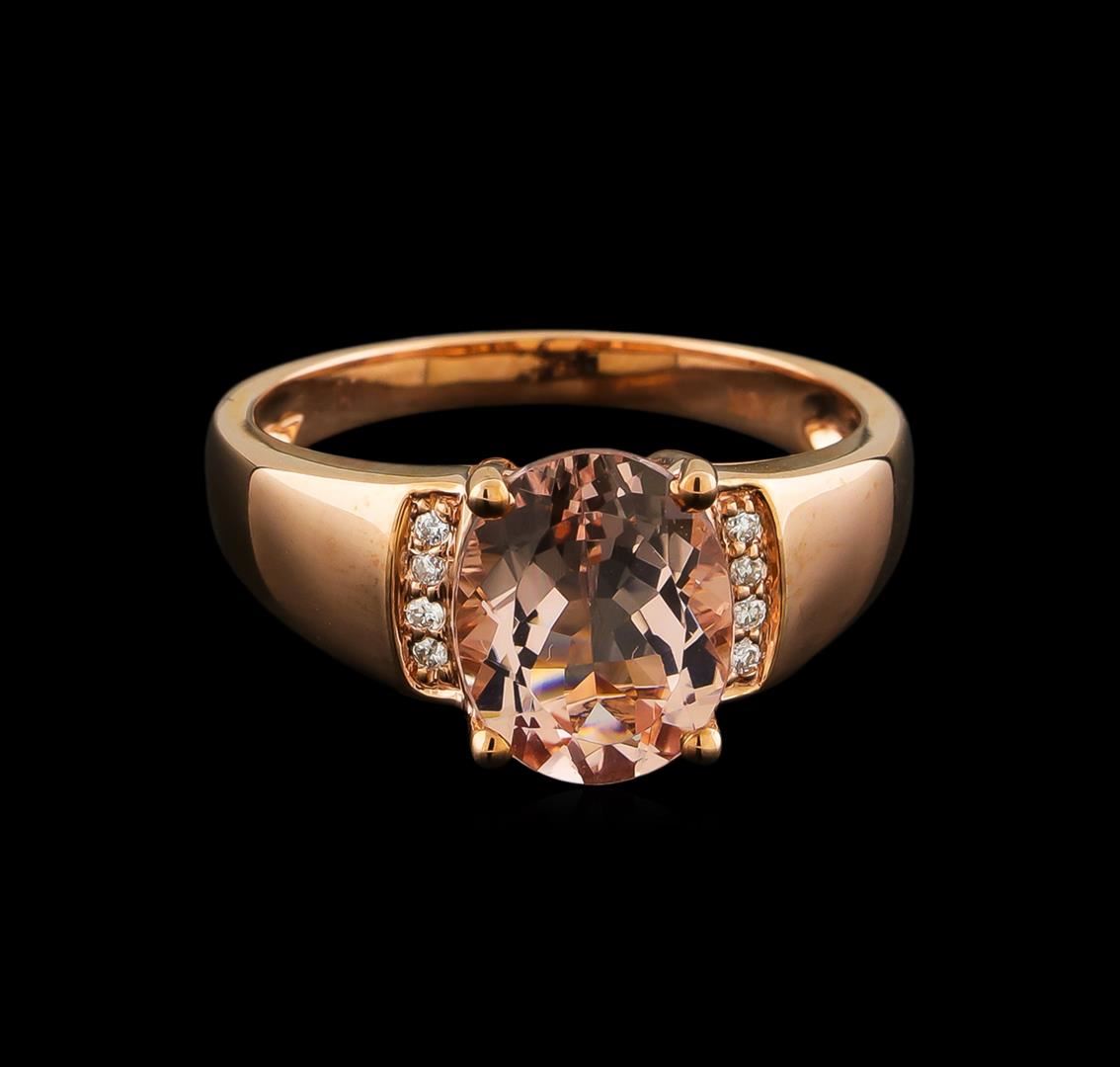 One ring featuring: 10KT rose gold weighing 2.93 grams containing one morganite center stone with a total weight of 2.25ct and eight round diamonds with a total weight of 0.04ct.
