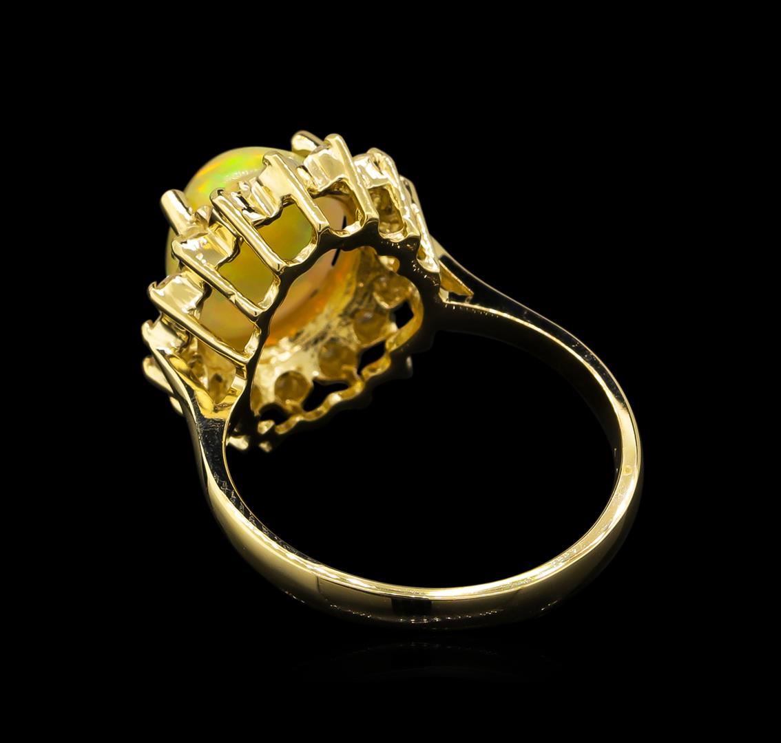 One ring featuring: 14KT yellow gold weighing 3.92 grams containing one opal with a total weight of 2.25ct and side diamonds with a total weight of 0.50ct.