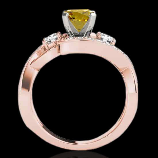REF-309X3T -35062 ---- 2.26 CTW Certified Si Intense Yellow Diamond Bypass Solitaire Ring 10K Rose Gold ---- Luxury Designer Brand Ring Appraised at $18,700 Certificate Number US35062 10k Rose gold, Ring Size is 7, Ring measuring approx. Uniform, weighing in total approx. 5.5 grams. Made in the USA and is stamped 10k, Main stone 1.5 carat total weight containing 1 pieces of Intense Fancy Yellow color with SI quality Round shape cut Diamond , Stone #2 0.76 carat total weight containing 46 pieces of H-I color with VS/SI quality Round shape cut Diamond