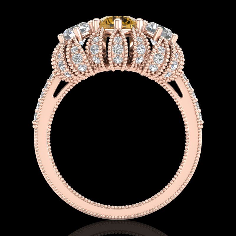 REF-254T5M -37750 ---- 2.26 CTW Intense Fancy Yellow Diamond Art Deco 3 Stone Ring 18K Rose Gold ---- Luxury Designer Brand 3 stone ring Appraised at $15,400 Certificate Number US37750 18k Rose gold, 3 stone ring Size is 7, 3 stone ring measuring approx. Uniform, weighing in total approx. 7 grams. Made in the USA and is stamped 18k, Main stone 0.77 carat total weight containing 1 pieces of Intense Fancy Yellow color with SI quality Round shape cut Diamond , Stone #2 0.72 carat total weight containing 2 pieces of H-I color with VS/SI quality Round shape cut Diamond , Stone #3 0.77 carat total weight containing 58 pieces of G-H color with VS/SI quality Round shape cut Diamond