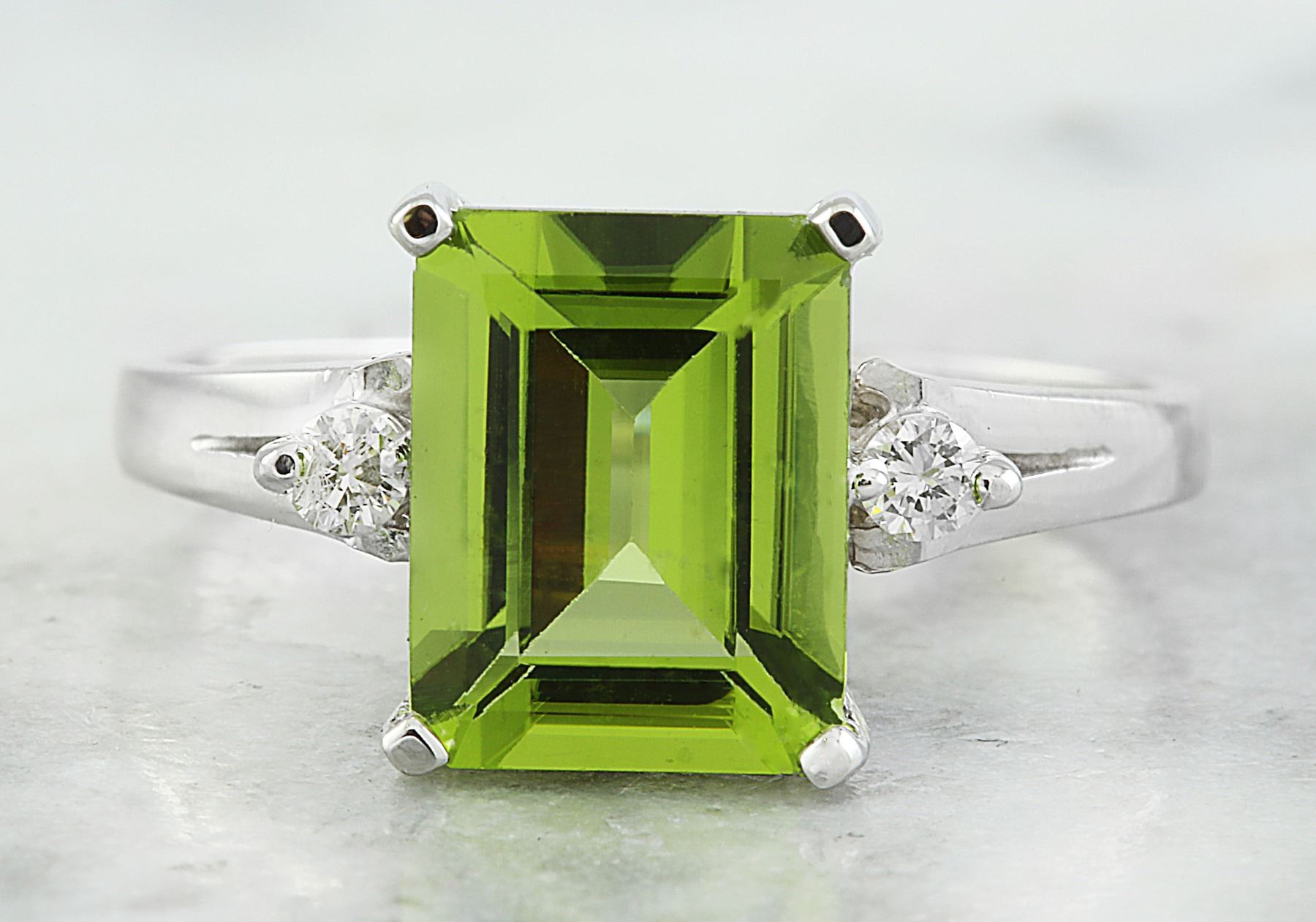 2.26 CTW Peridot 18K White Gold Diamond Ring