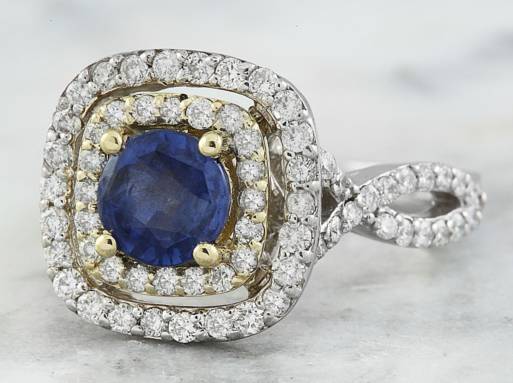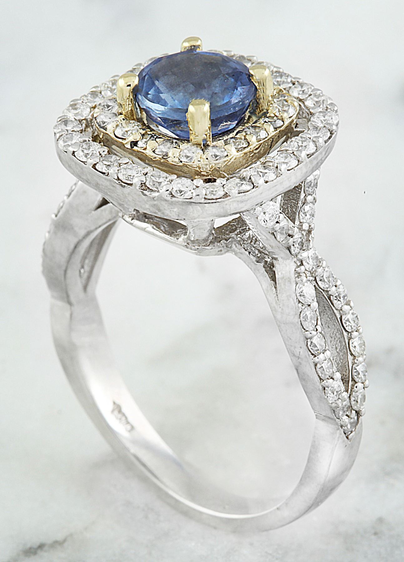 2.26 CTW Sapphire 18K Two Tone Gold Diamond Ring
