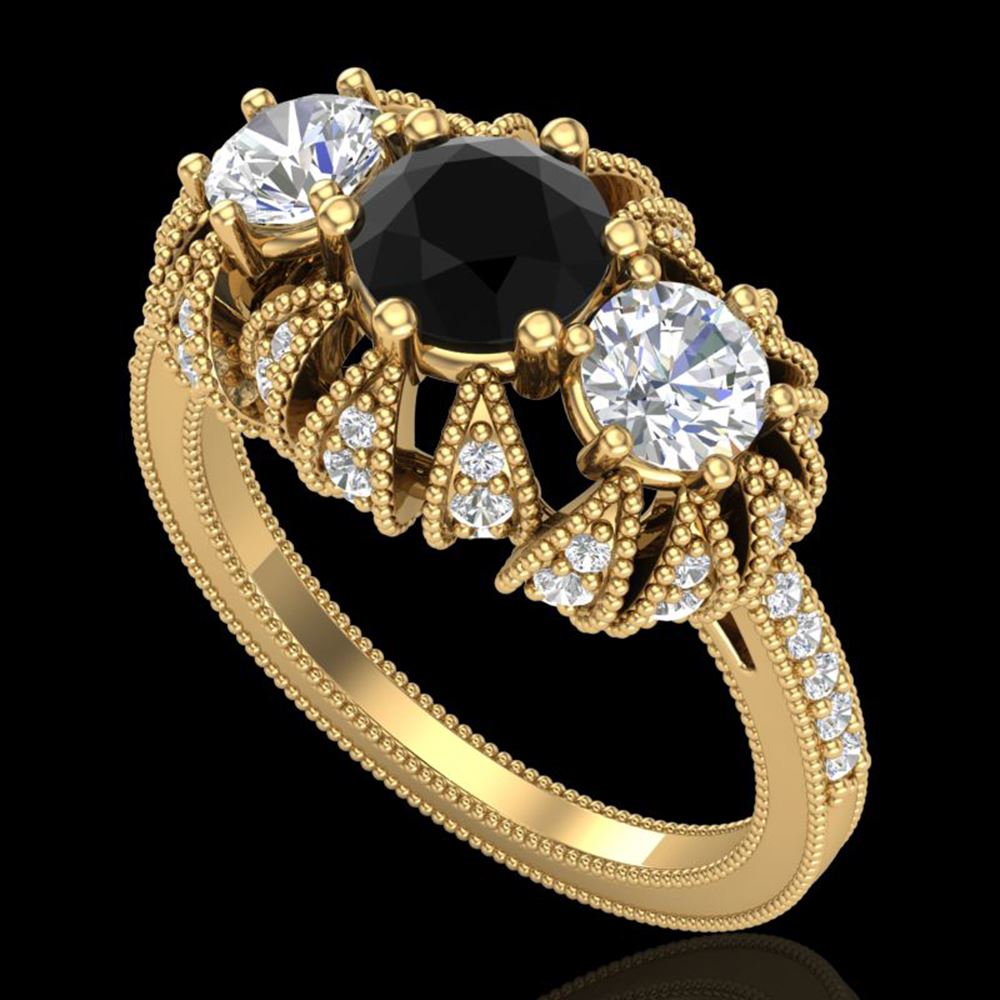 REF-218K2Y - SKU: 37746 ---- 2.26 ctw Fancy Black Diamond Art Deco 3 Stone Ring 18k Yellow Gold