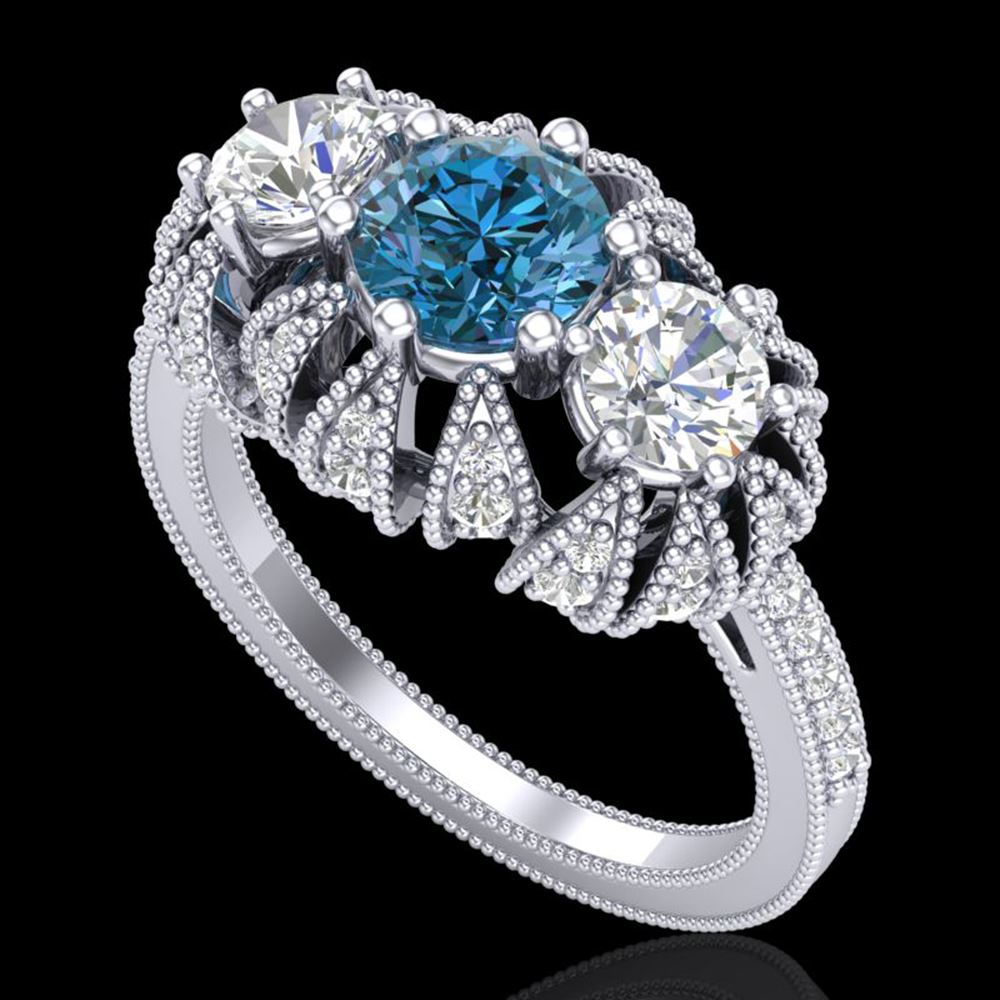 REF-254X5A - SKU: 37747 ---- 2.26 ctw Intense Blue Diamond Art Deco Micro Pave Ring 18k White Gold