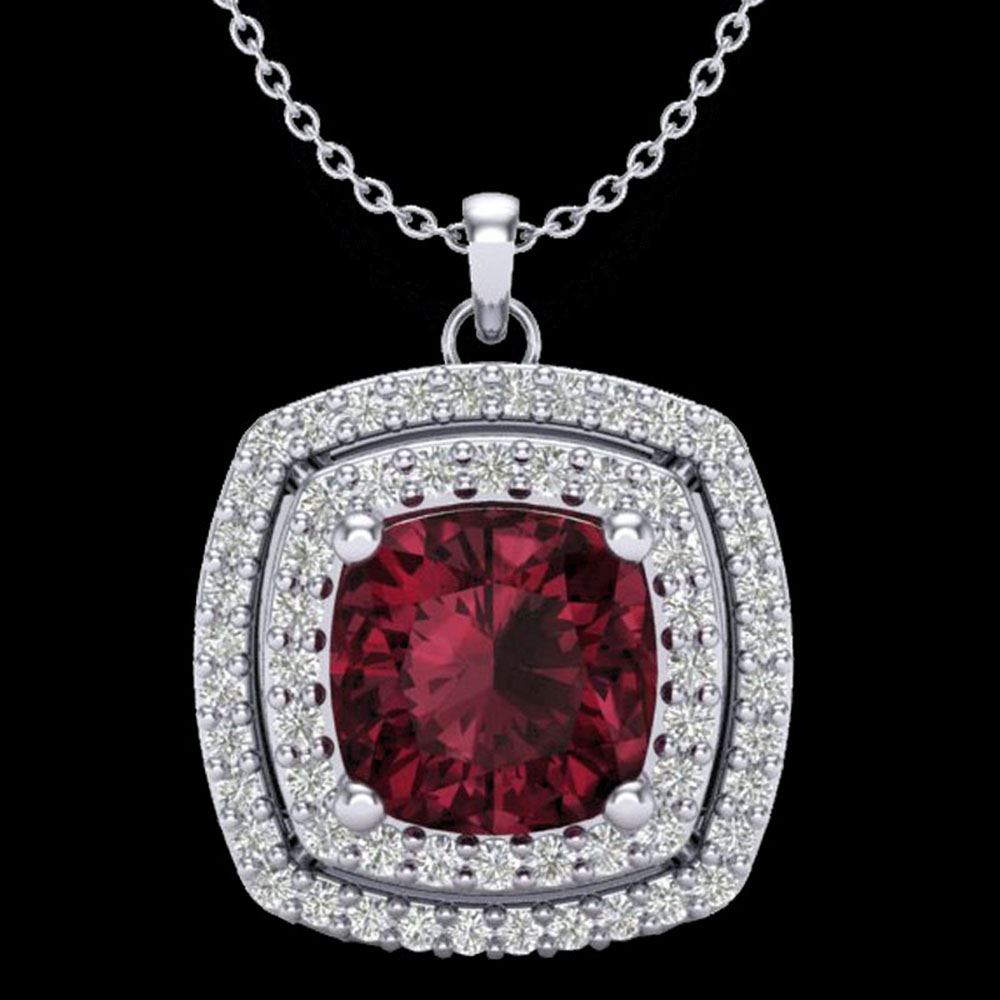 REF-49H2R - SKU: 20457 ---- 2.27 ctw Garnet & Micro Pave VS/SI Diamond Necklace 18k White Gold