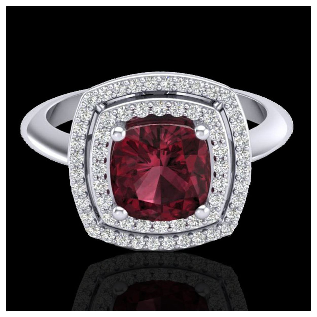 2.27 ctw Garnet & VS/SI Diamond Ring 18K White Gold