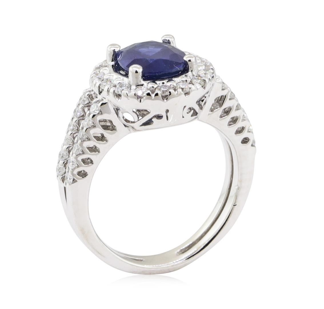 One electronically tested 18KT white gold lady's cast fashion ring with a split shank halo with a bright polish finish. The featured lady's ring has a shank measuring 3.21 millimeters wide. Identified with markings of '18K 750'. Condition is like new, goo