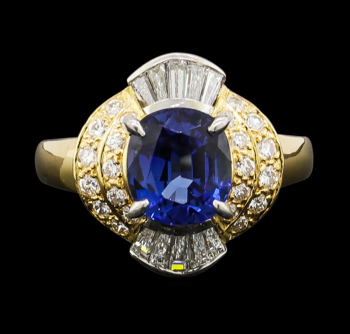 One ring featuring: 18KT Yellow Gold containing Sapphire with a total weight of 2.27ct and Diamonds with a total weight of 0.70ct. Total Weight of Ring: 6.6 grams.
