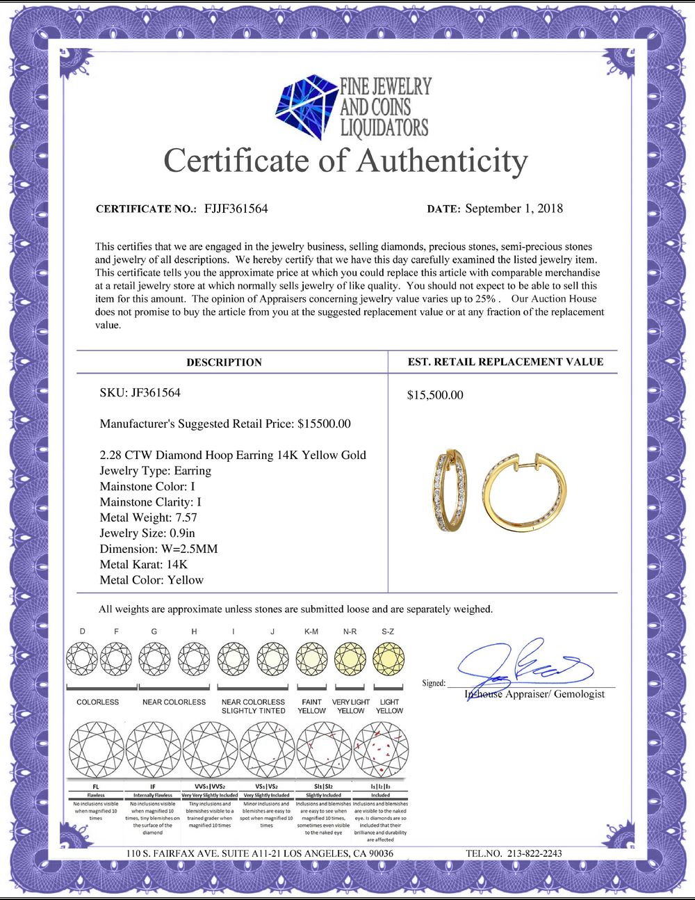 REF-205Y3X - JF361564 ---- 2.28 CTW White Round Diamond Earring 14K Yellow Gold