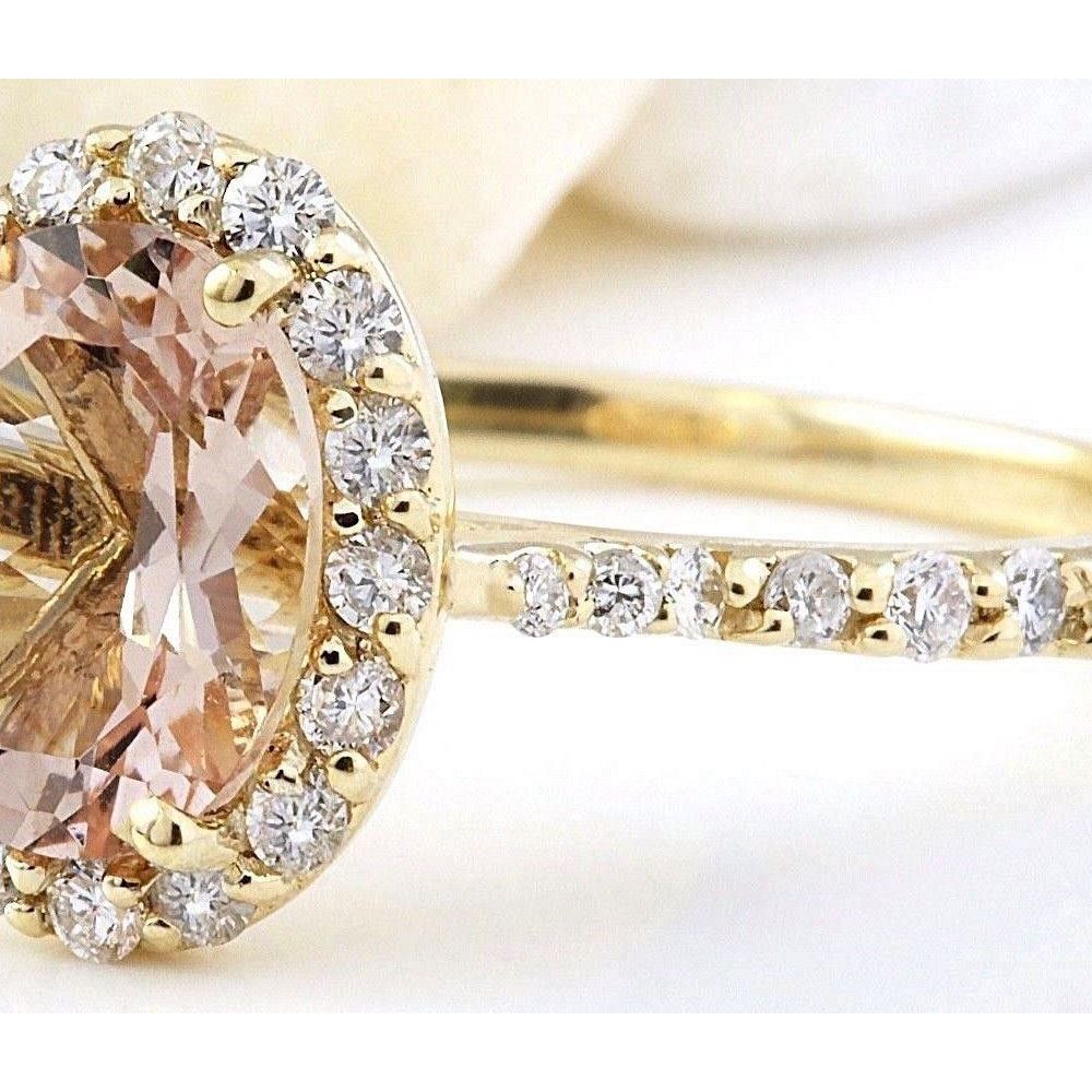 2.28 Carat Natural Morganite 14K Solid Yellow Gold Diamond Ring