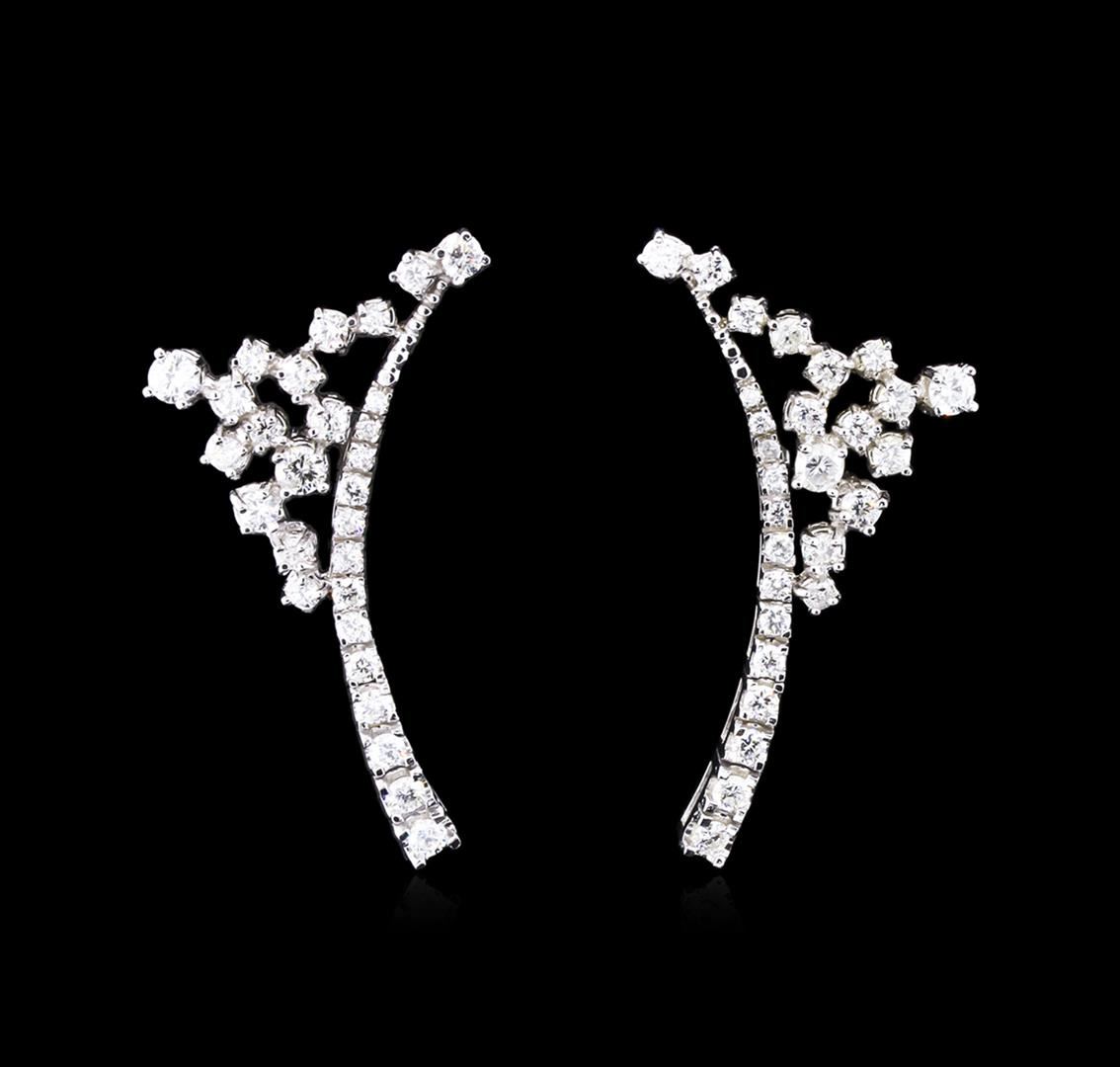 One pair electronically tested 14KT white gold lady's combination cast & assembled fashion earrings with Omega clip backs with posts with a bright polish finish. Identified with markings of "K14". Condition is new, good workmanship. Containing: Four prong set round brilliant cut diamonds, measuring 3.00 - 2.90 x 1.92mm (depth est.) approximate total weight of 4 Stones = 0.44ct. Graded in the setting. Clarity: SI-2 to I-1. Color: G - I. Cut Good Twelve prong set round brilliant cut diamonds, measuring 2.80 - 2.30 x 1.66mm (depth est.) approximate total weight of 12 Stones = 0.84ct. Graded in the setting. Clarity: SI-1 to I-1. Color: H - I. Cut Good Forty prong set round brilliant cut diamonds, measuring 2.10 - 1.50 x 1.17mm (depth est.) approximate total weight of 40 Stones = 1.00ct. Graded in the setting. Clarity: SI-1 to I-1. Color: H - I. Cut Good. Total Weight of Diamonds 2.28ct. Total Weight of Earrings 8.90gm. GAS Appraised at $6,275.00.