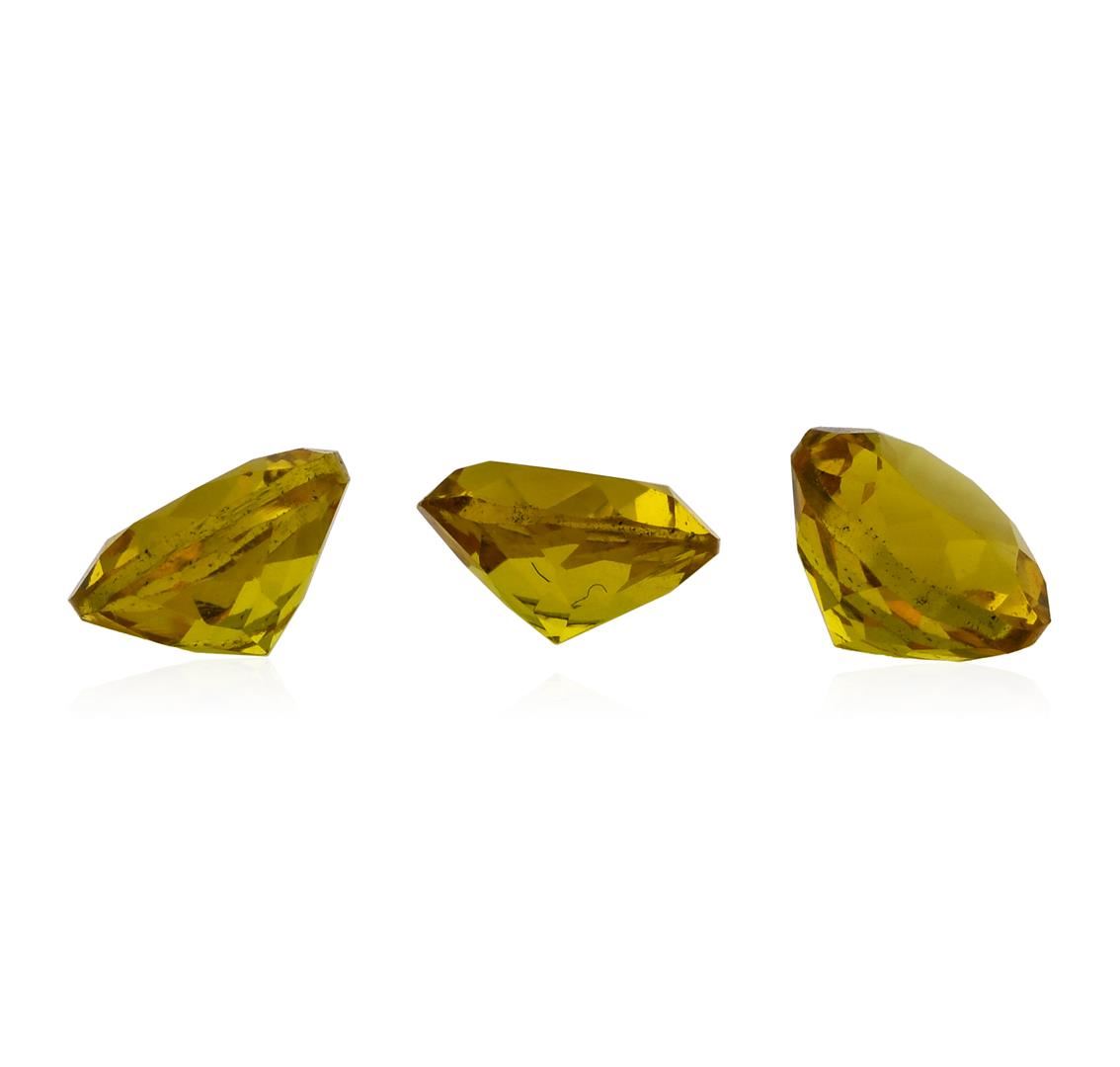One natural round cut citrine quartz parcel of three with an exact weight of 2.28ctw., clarity is eye clean, yellowish orange. Gemological Appraisals Services estimates the retail value at $114 GAS Appraised.