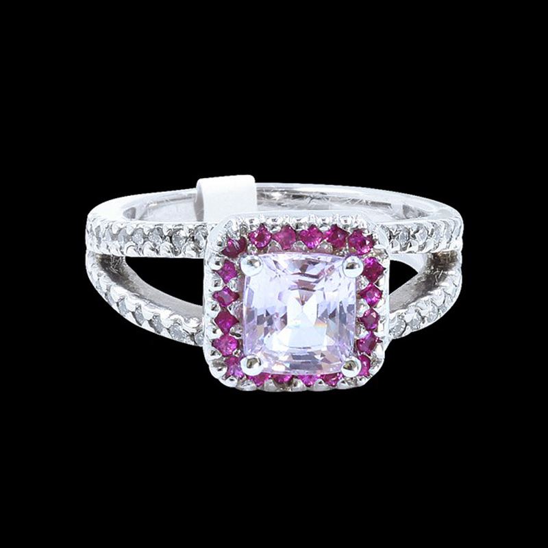 14K WHITE GOLD NATURAL CEYLON PINK SAPPHIRE RING :6.31GRAM /PINK SAPPHIRE :0.26CT /DIAMOND :0.48CT/#GVR1223