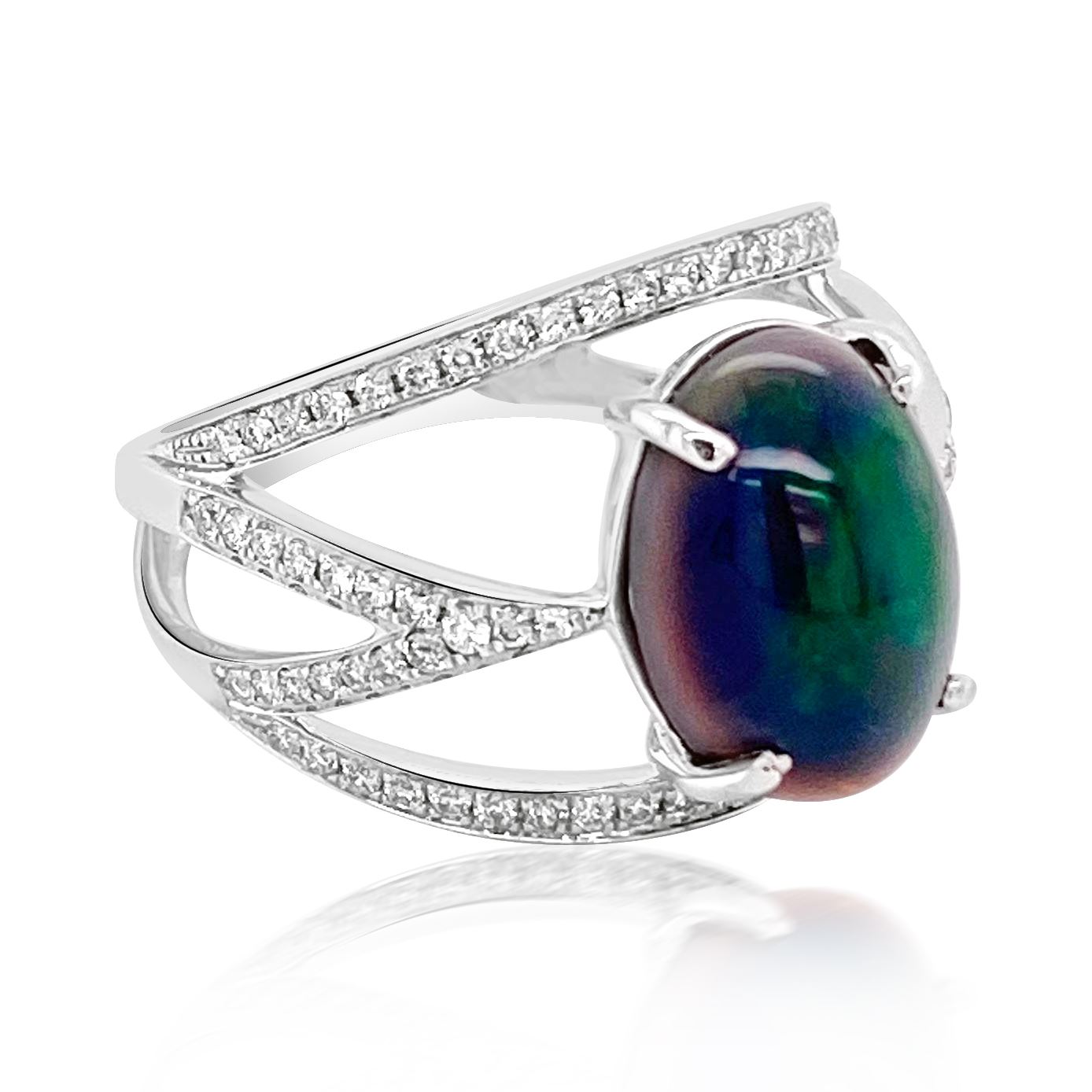 2.28ct Natural OPAL 14K White Gold 3.82gm Diamond 0.4ct Ring #PJ5080