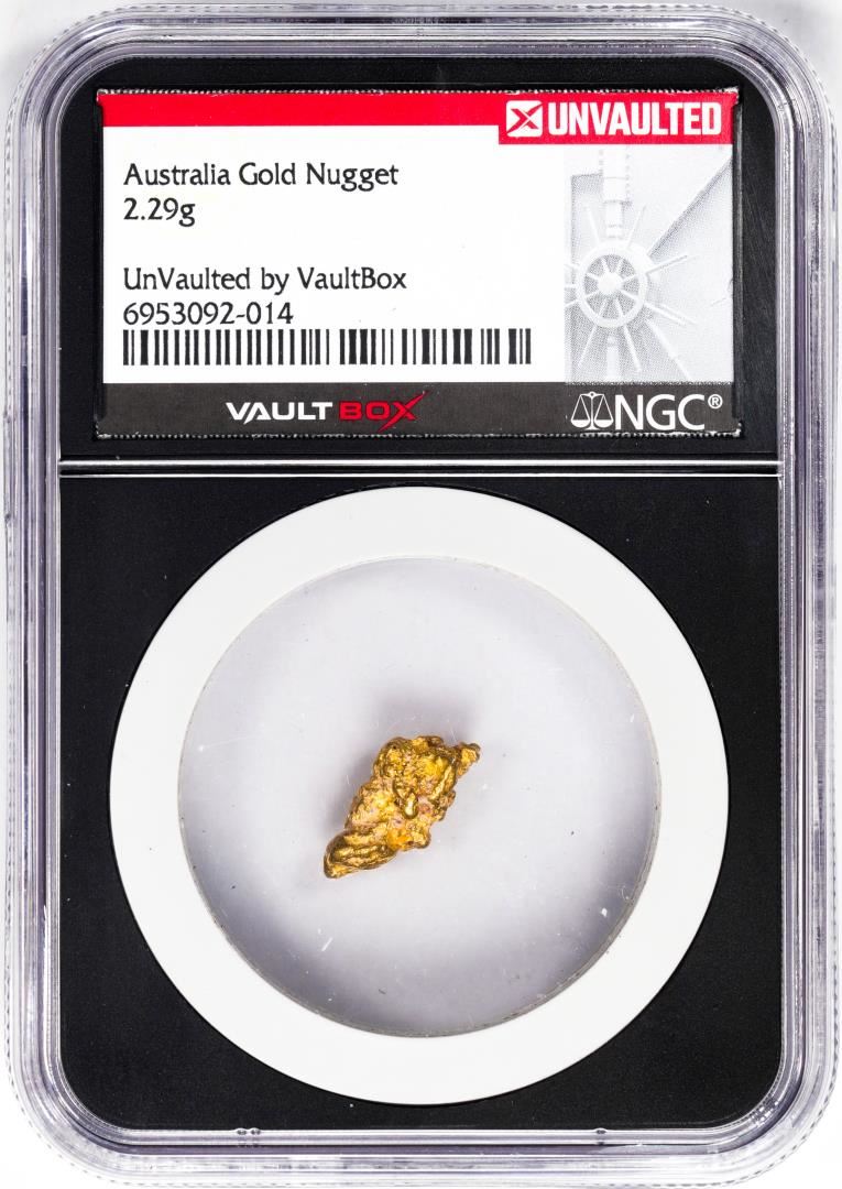 One 2.29 Gram Australia Gold Nugget NGC Vaultbox Unvaulted. NGC Certified.