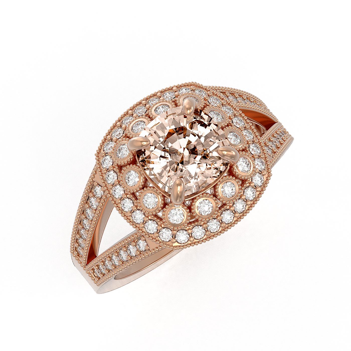 REF-107H3R - SKU: 44046 ---- 2.29 ctw Certified Morganite & Diamond Victorian Ring 14K Rose Gold