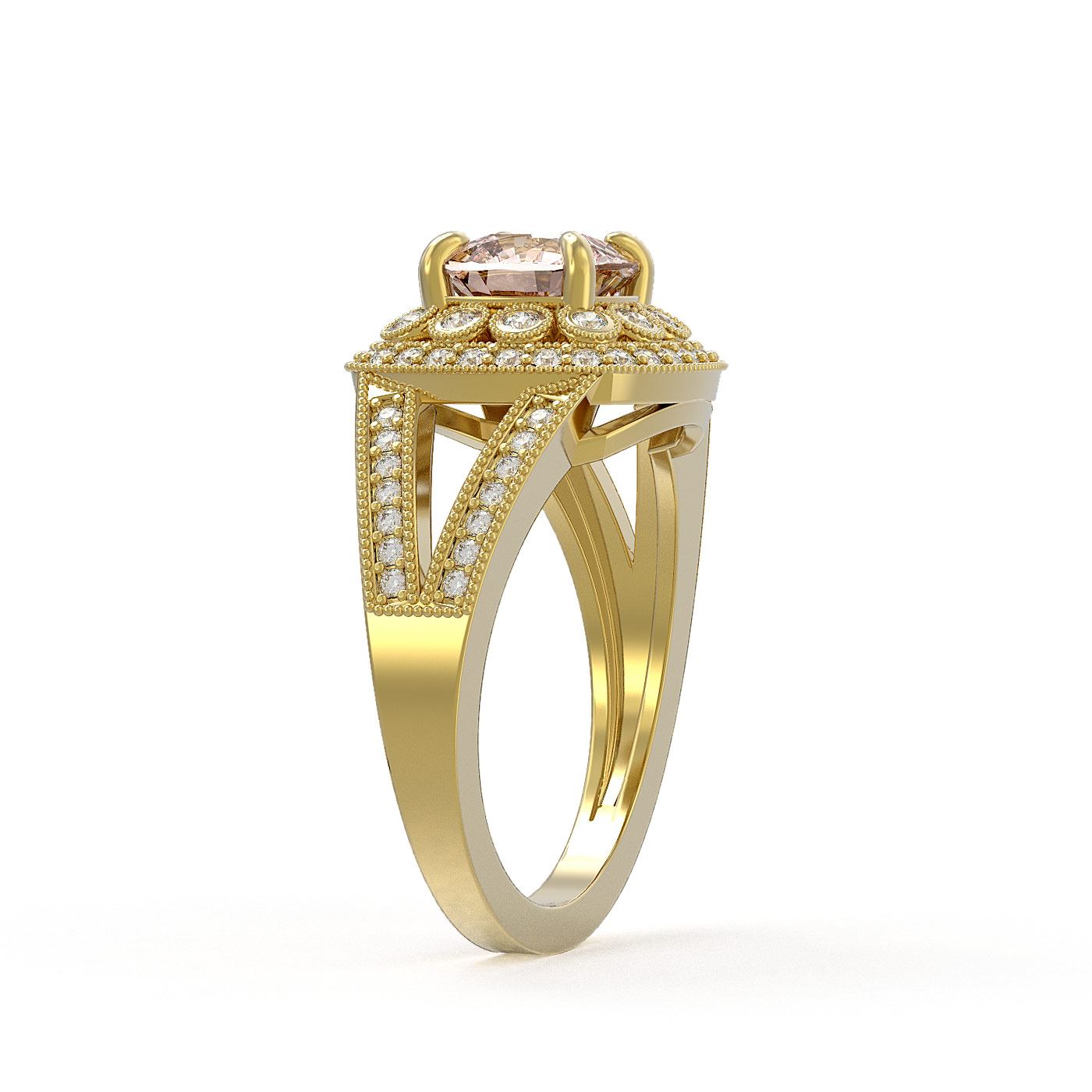 SKU: 44047 ---- 2.29 ctw Certified Morganite & Diamond Victorian Ring 14K Yellow Gold