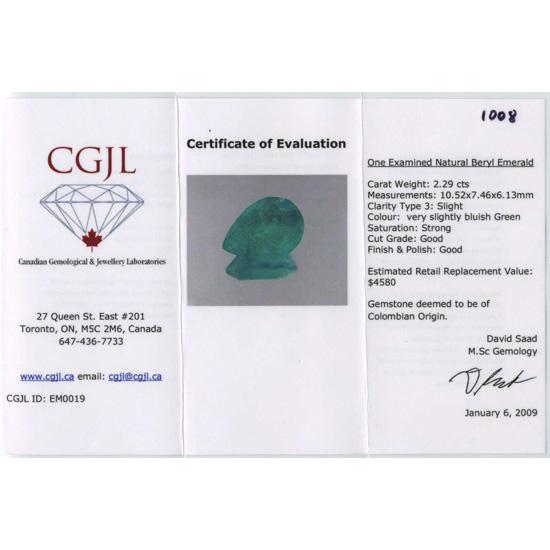 Fabulous stone hard to capture in photos due to depth of color; with gemologist appraisal card; typical emerald clarity SI2 and well colored