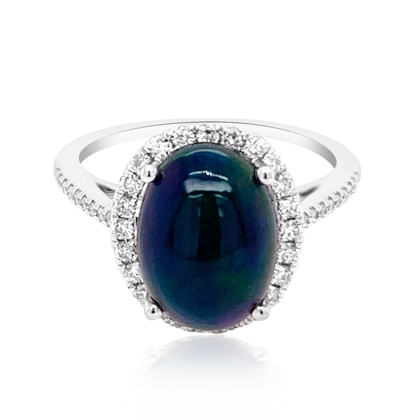 2.2ct Natural OPAL 14K White Gold 2.15gm Diamond 0.32ct Ring #PJ4190