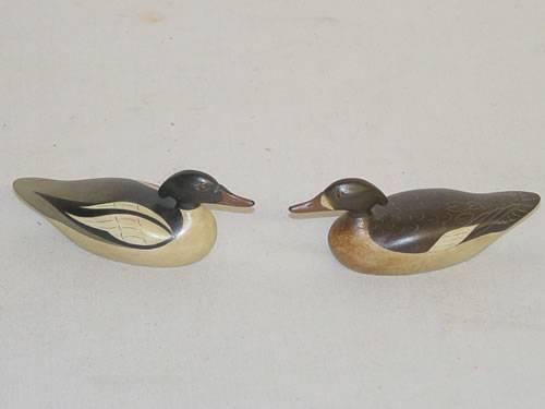 (2) 3 1/2" MINIATURE MERGANSER DUCK DECOYS SIGNED L. SCHEYD