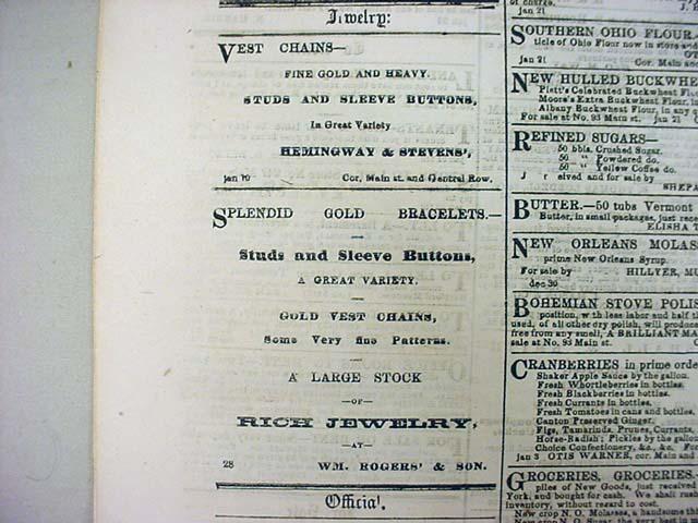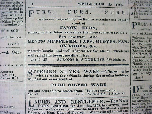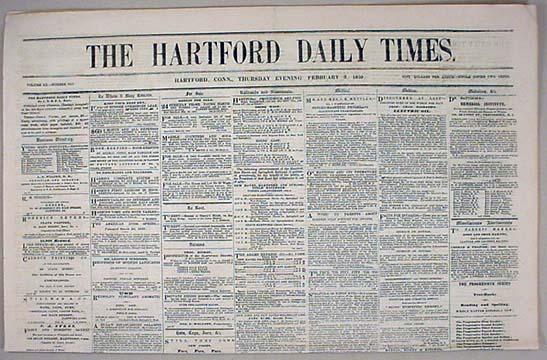 2-3-1859 HARTFORD DAILY TIMES NEWSPAPER - Incl. death of clockmaker Seth Thomas, more.