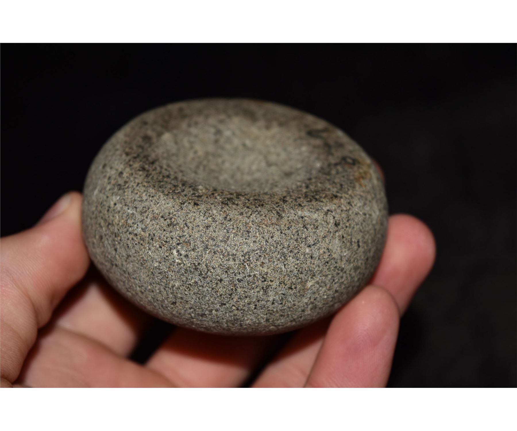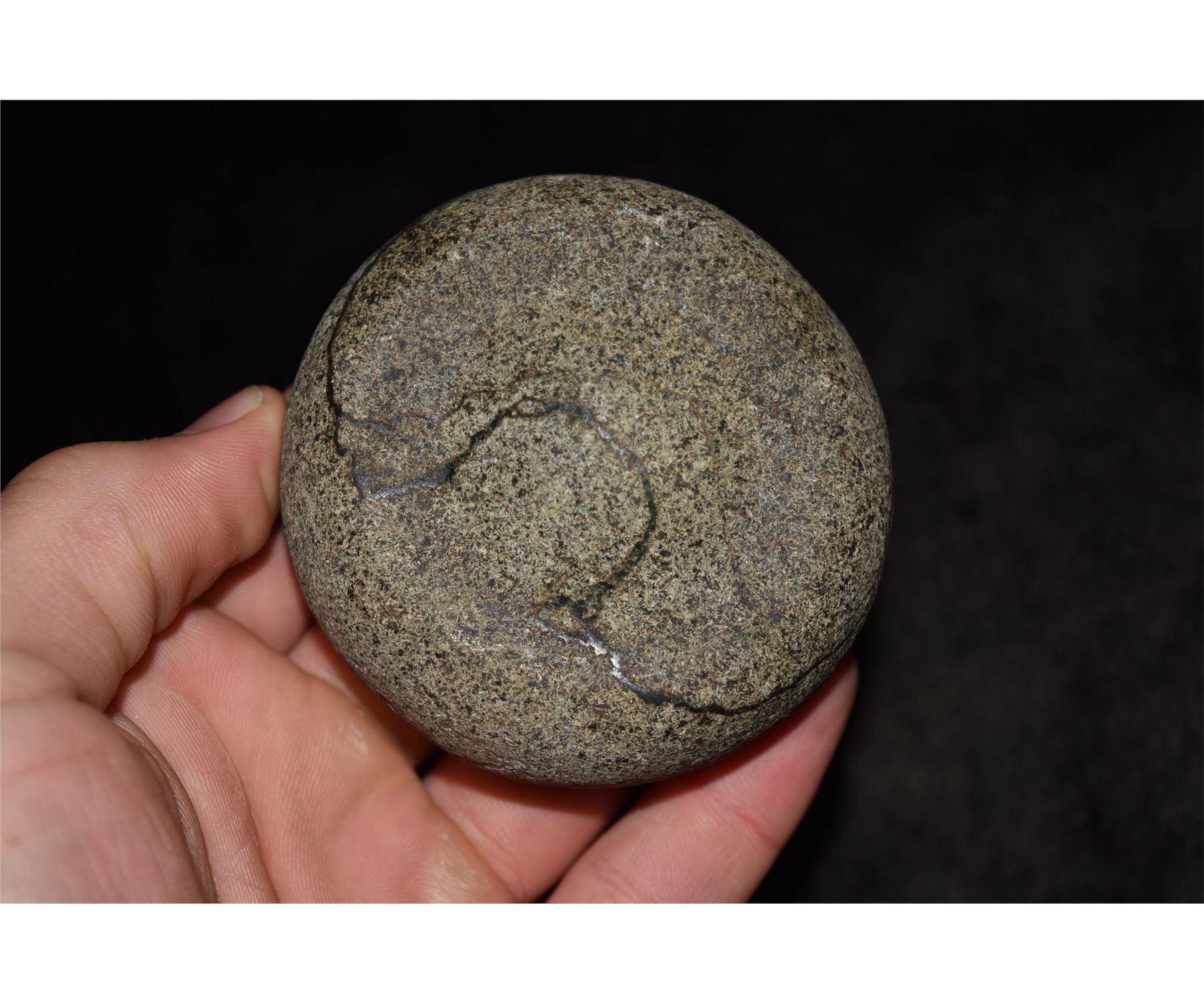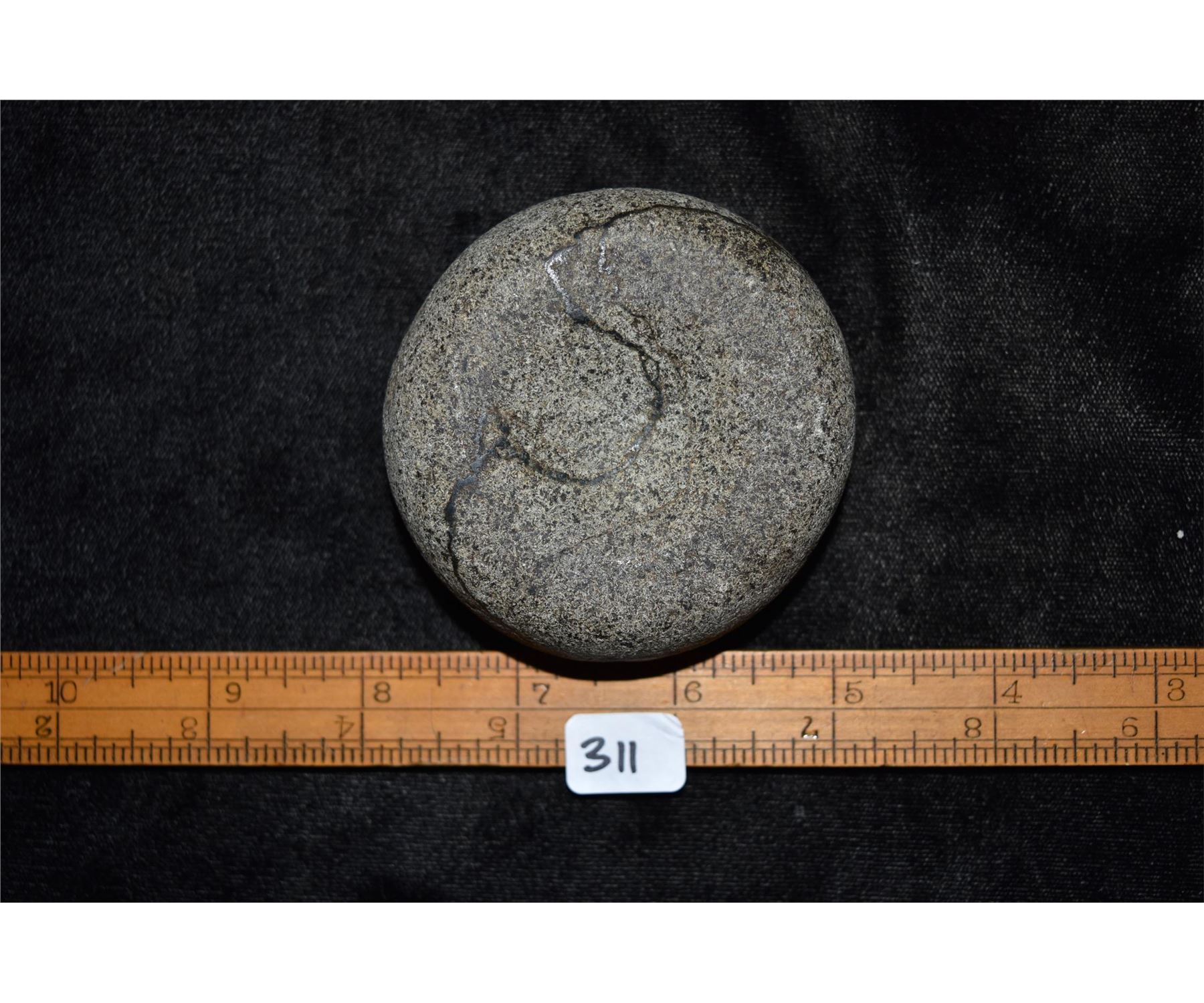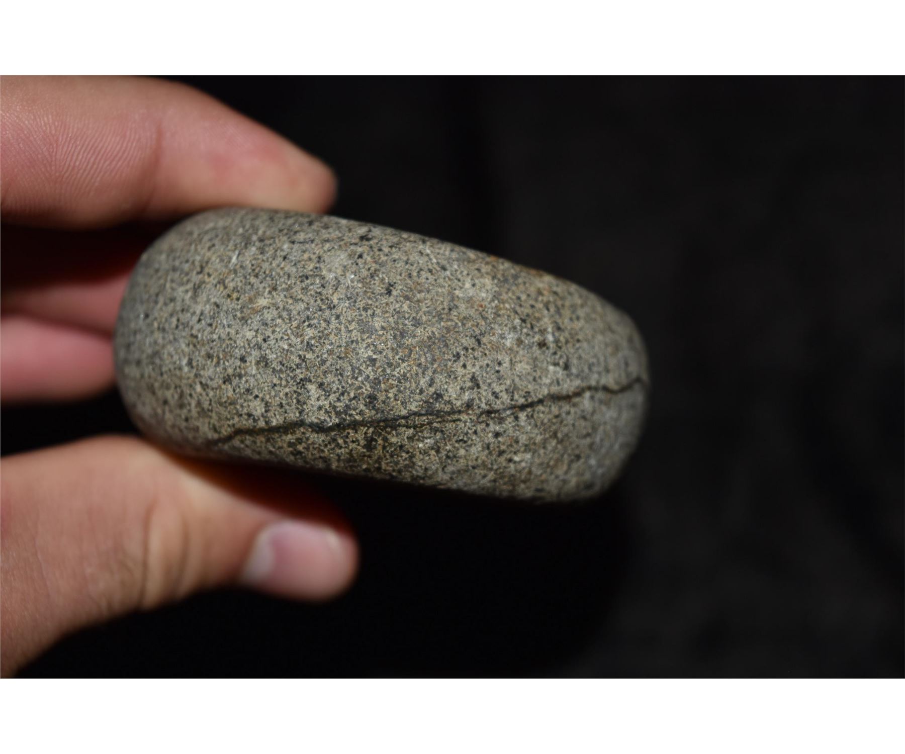 3 3/4" Discoidal, Gray Hardstone with Colorful Black Vein, Ex Dr. Nuckles Collection, Dr Nuckles Collected in late 1800s to early 1900s, Near Kansas City, Missouri