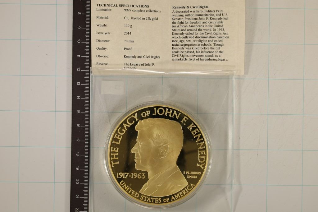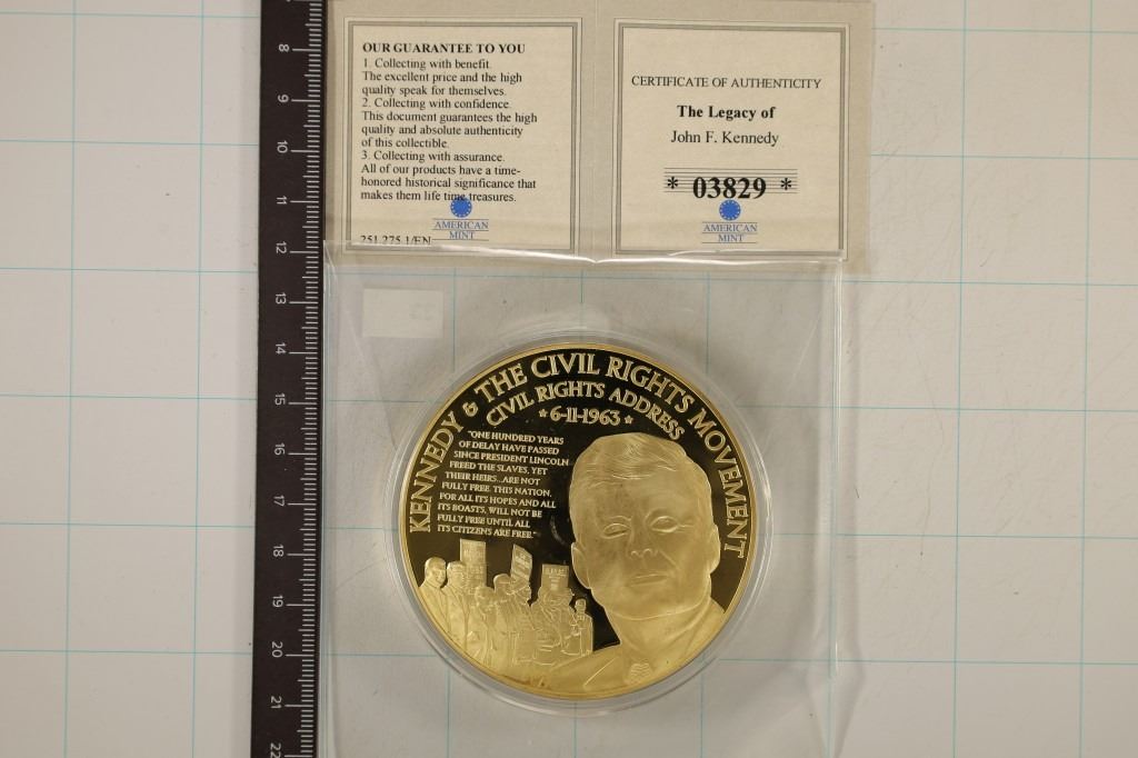 LIMITED EDITION 9999. OBVERSE KENNEDY AND CIVIL RIGHTS AND THE REVERSE THE LEGACY OF JOHN F. KENNEDY WITH CERTIFICATE IN PLASTIC BAG AND IN HARD PLASTIC CAPSULE